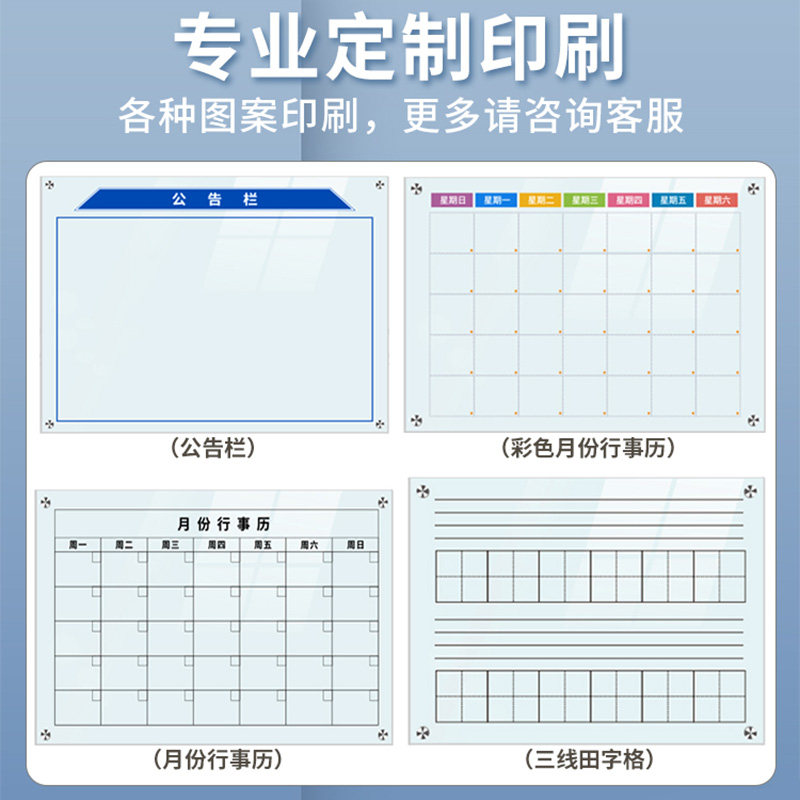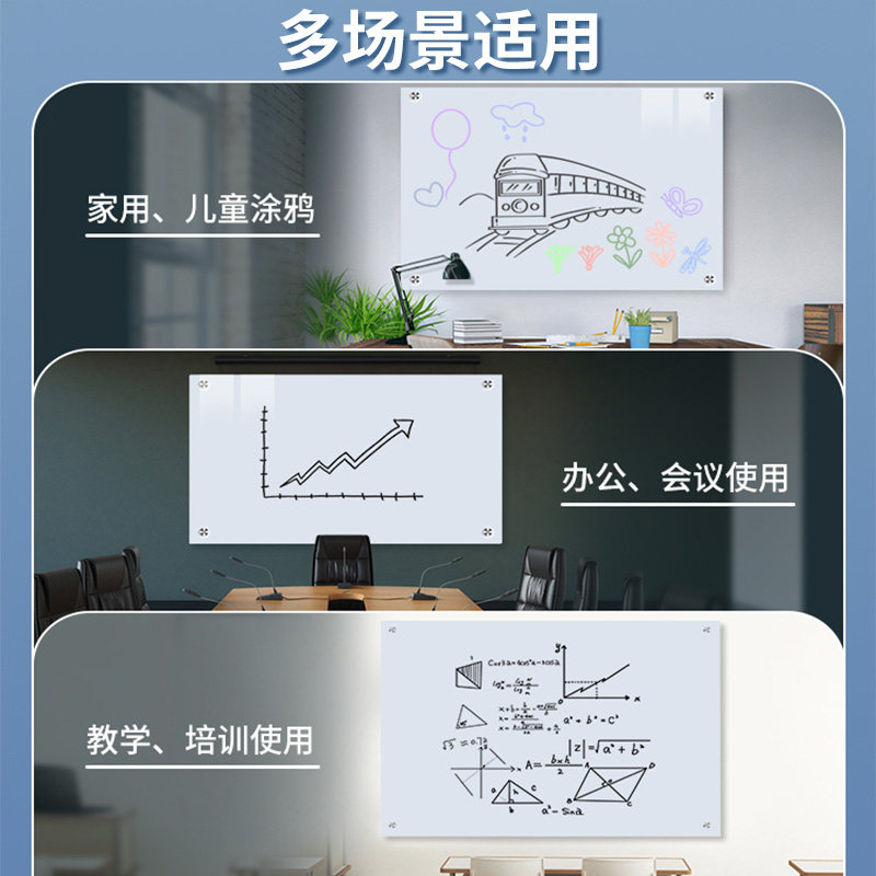 齐富磁性钢化玻璃白板写字板办公室会议书写黑板商用墙贴挂式家用儿童可擦写磁吸教学培训记事板留言板涂鸦墙