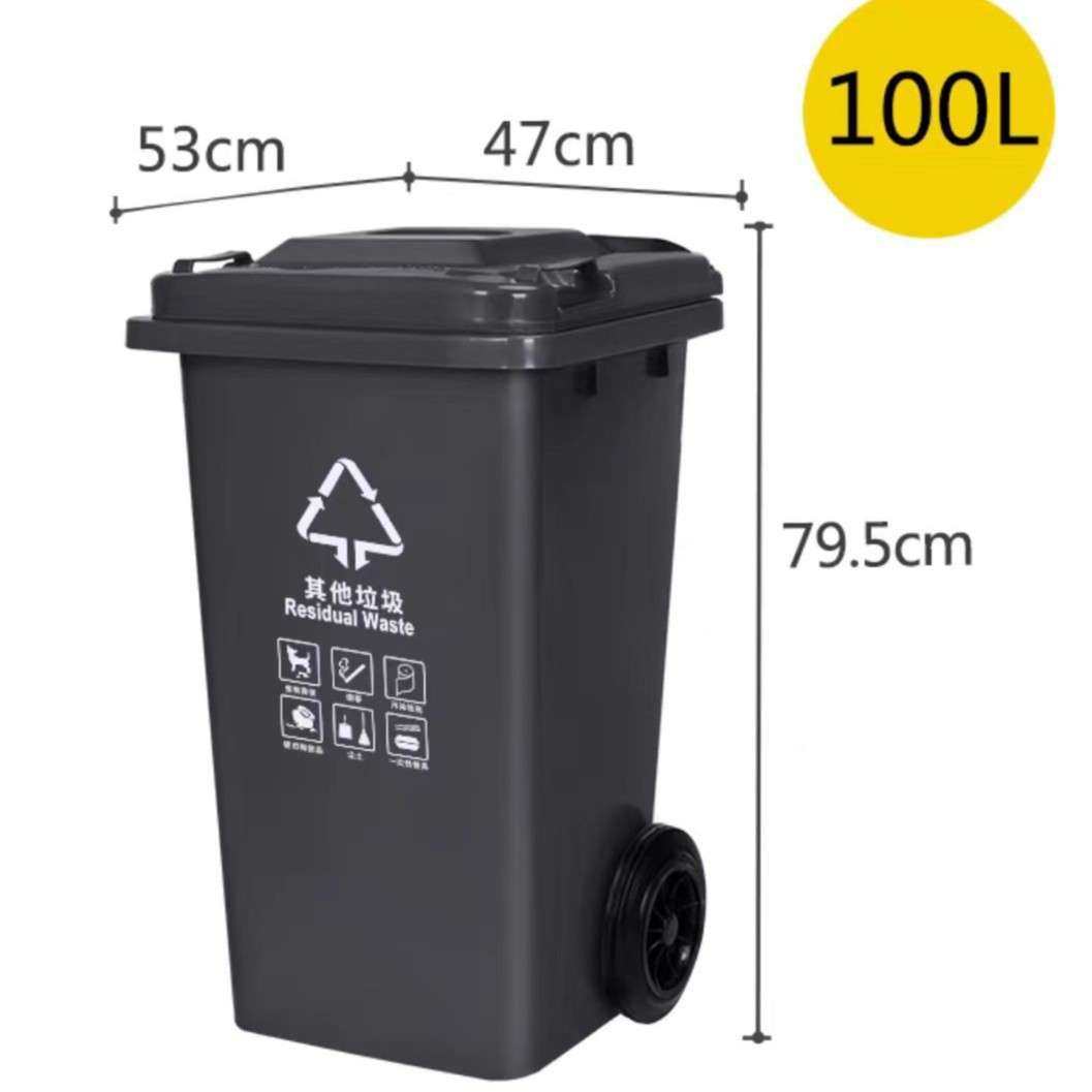户外环卫垃圾桶商用大号100l分类大容量加厚脚踏带轮盖挂车