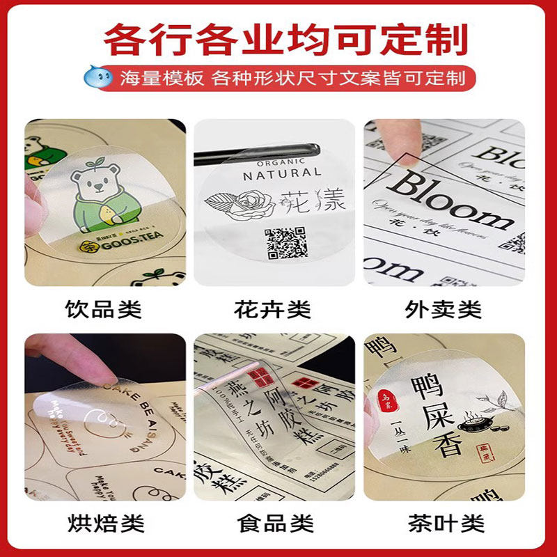 透明烫金贴纸定制烘焙蛋糕食品logo标签定做花艺图案商标贴画设计外卖封口贴不干胶奶茶杯咖啡杯防水贴纸订制