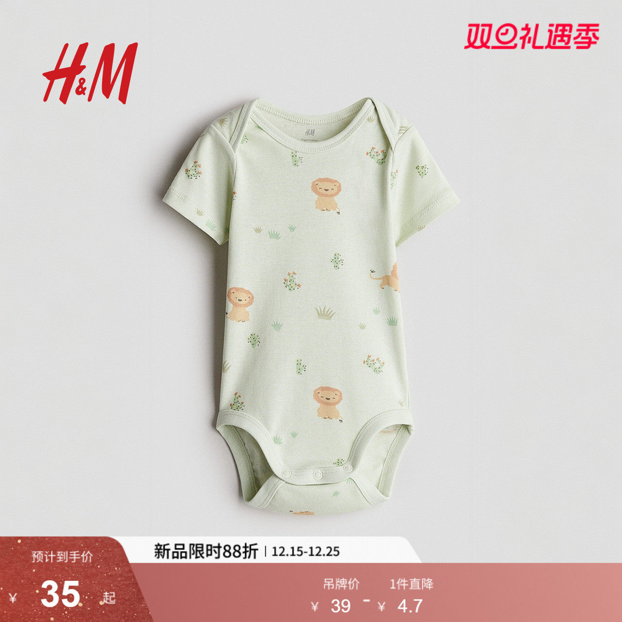 HM童装男婴女婴连身衣25冬季薄款婴儿新款印花短袖哈衣1265831