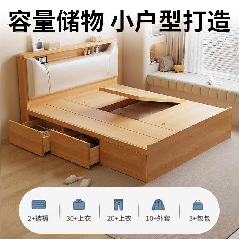 榻榻米床衣柜一体卧室床小户型实木床双人床储物床带隔断收纳床架