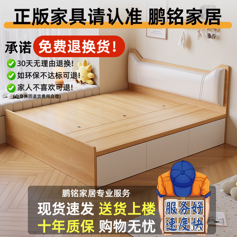 实木榻榻米床双人储物床现代简约无床头床小户型单人1.2/35/8定制