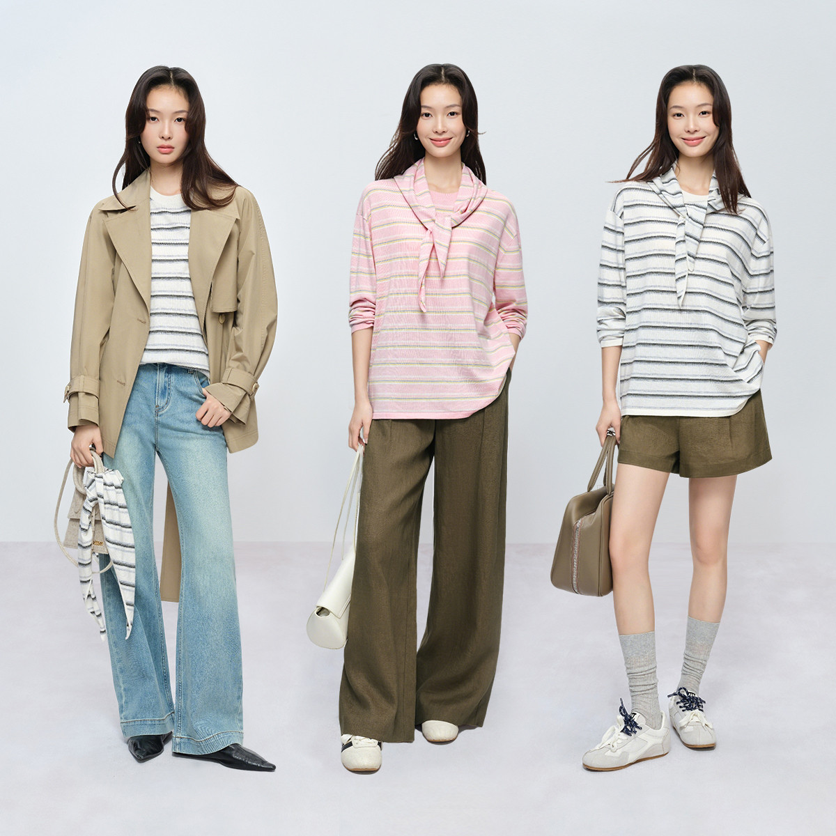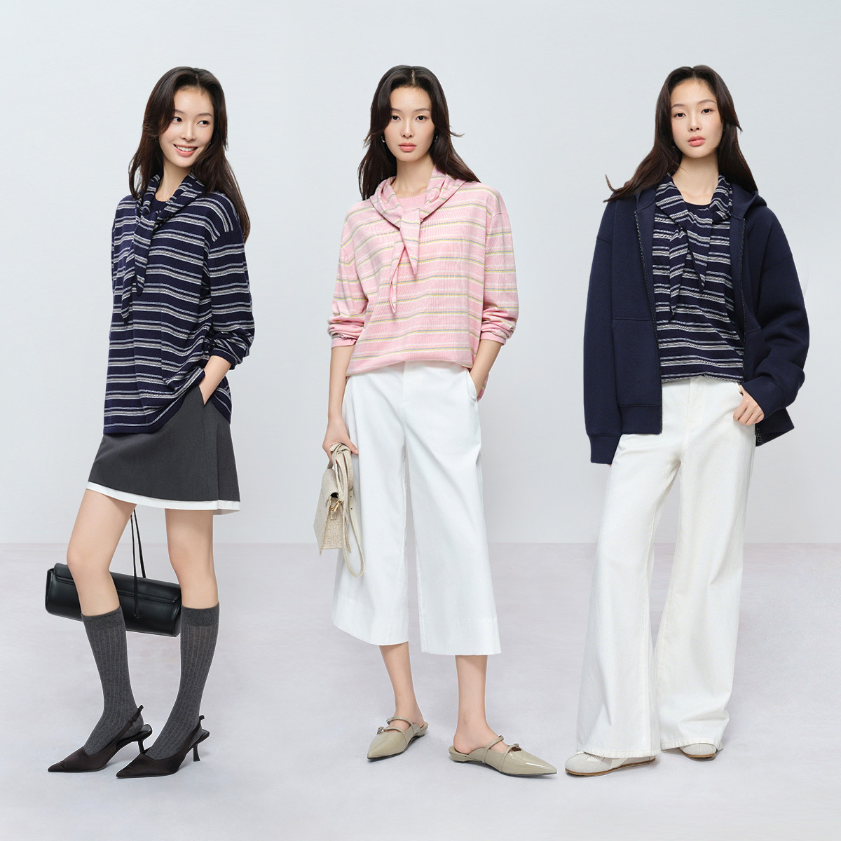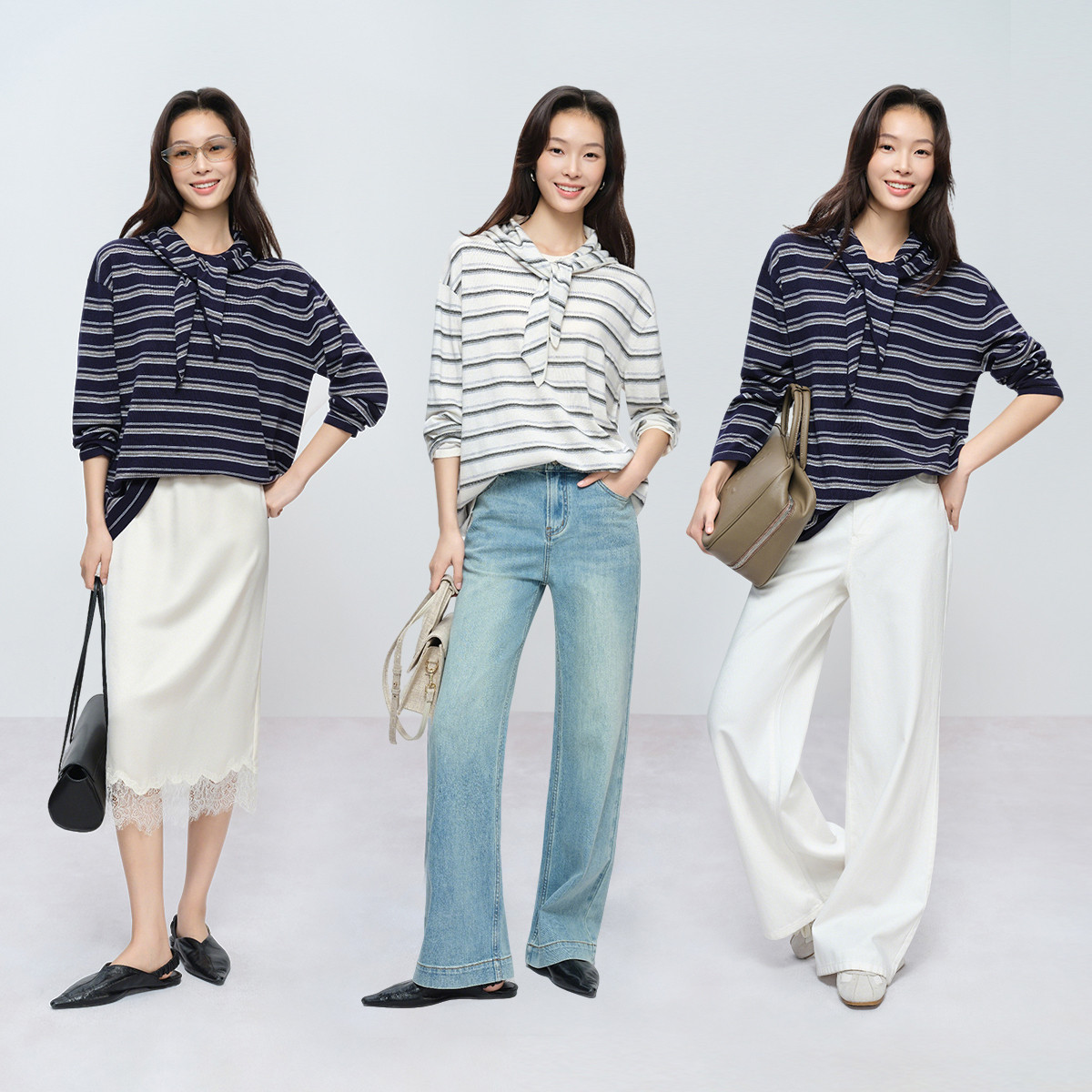 【可机洗】复古条纹2件套naivee纳薇26春新款三角巾+羊毛针织衫T
