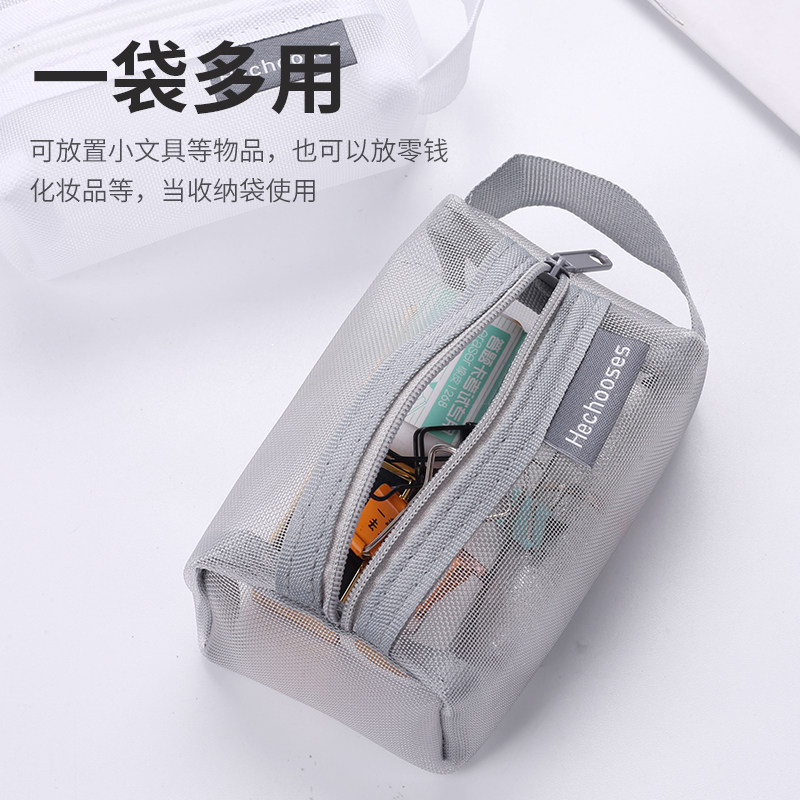 网纱透明收纳袋迷你分装网格拉链袋加厚拉链小钱包小文具袋分类小包便携公交卡零钱文件袋身份证硬币小巧卡包