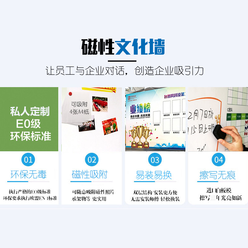 定制企业文化墙可擦写业绩榜墙贴磁性软白板工厂车间看板公告栏