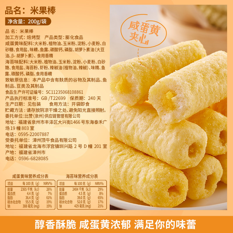 比比赞米果棒能量棒夹心米果卷解馋网红怀旧膨化零食休闲食品小吃