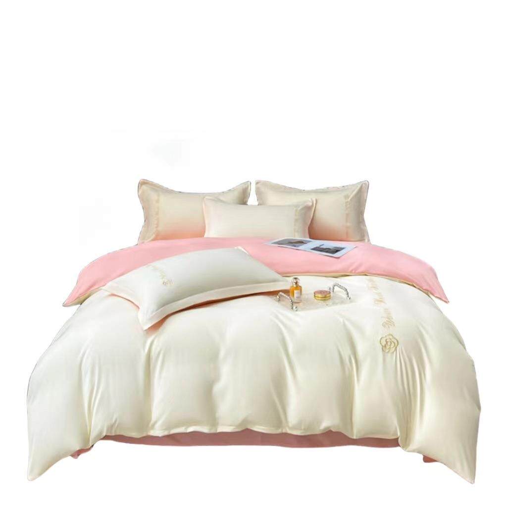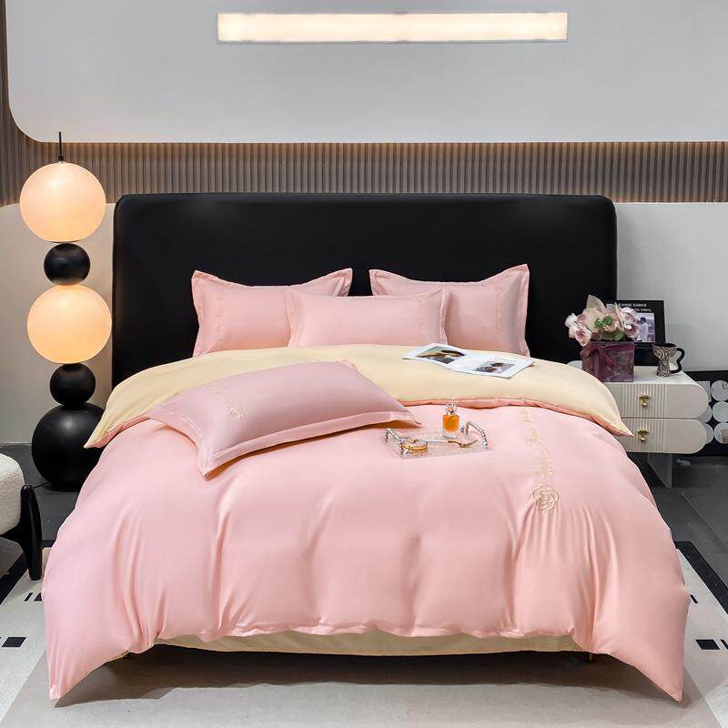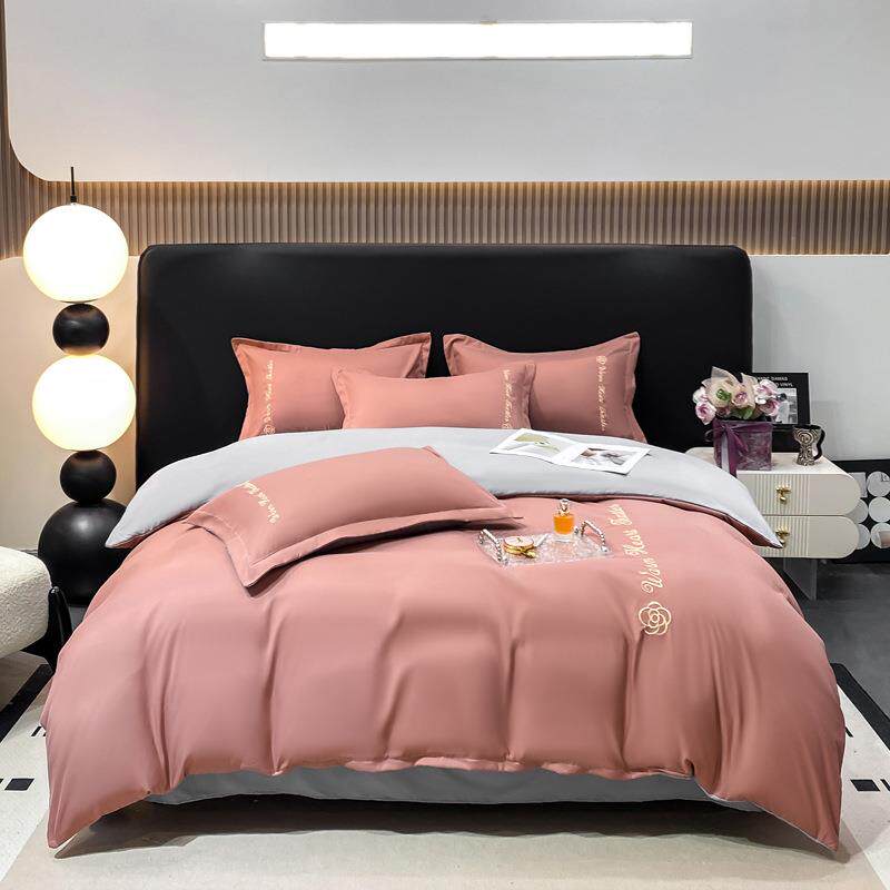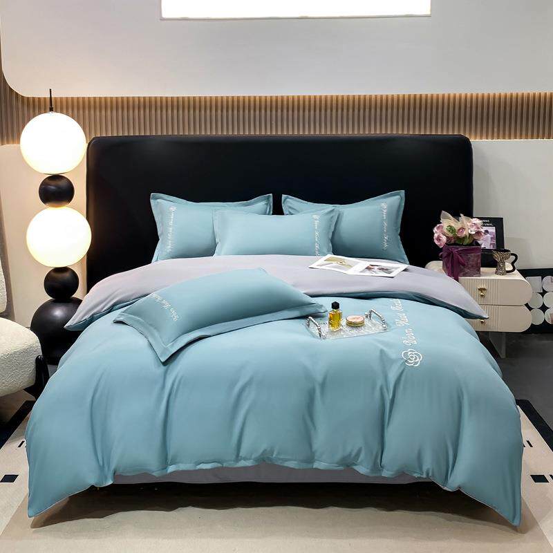 纯色水洗磨毛四件套亲肤宿舍三件套双人刺绣被套床单床品套件