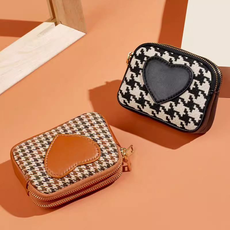 2025新款千鸟格小巧钱包女迷你钥匙硬币包精致小众设计收纳零钱包