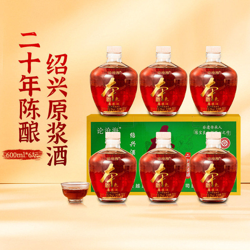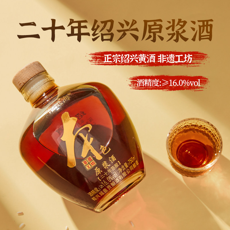 绍兴黄酒二十年陈原浆酒750ml玻璃坛整箱16度老酒自饮送礼高端