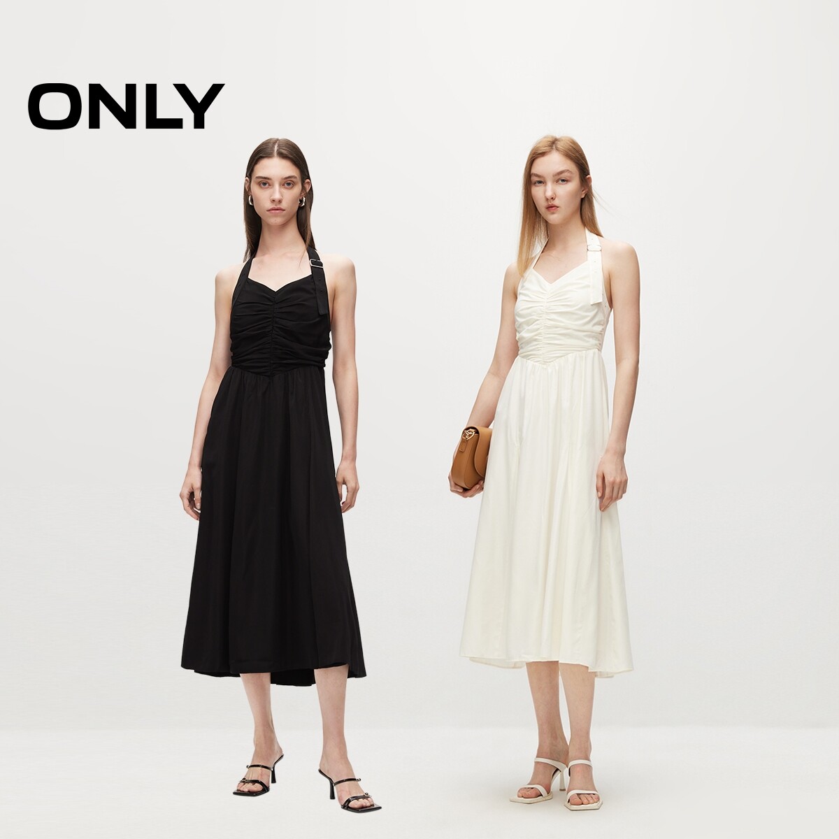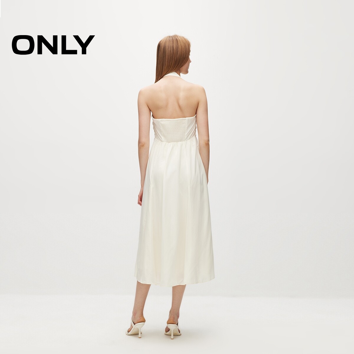 【ONLY奥莱】春夏新款度假风显瘦V领挂脖A字中长裙连衣裙女