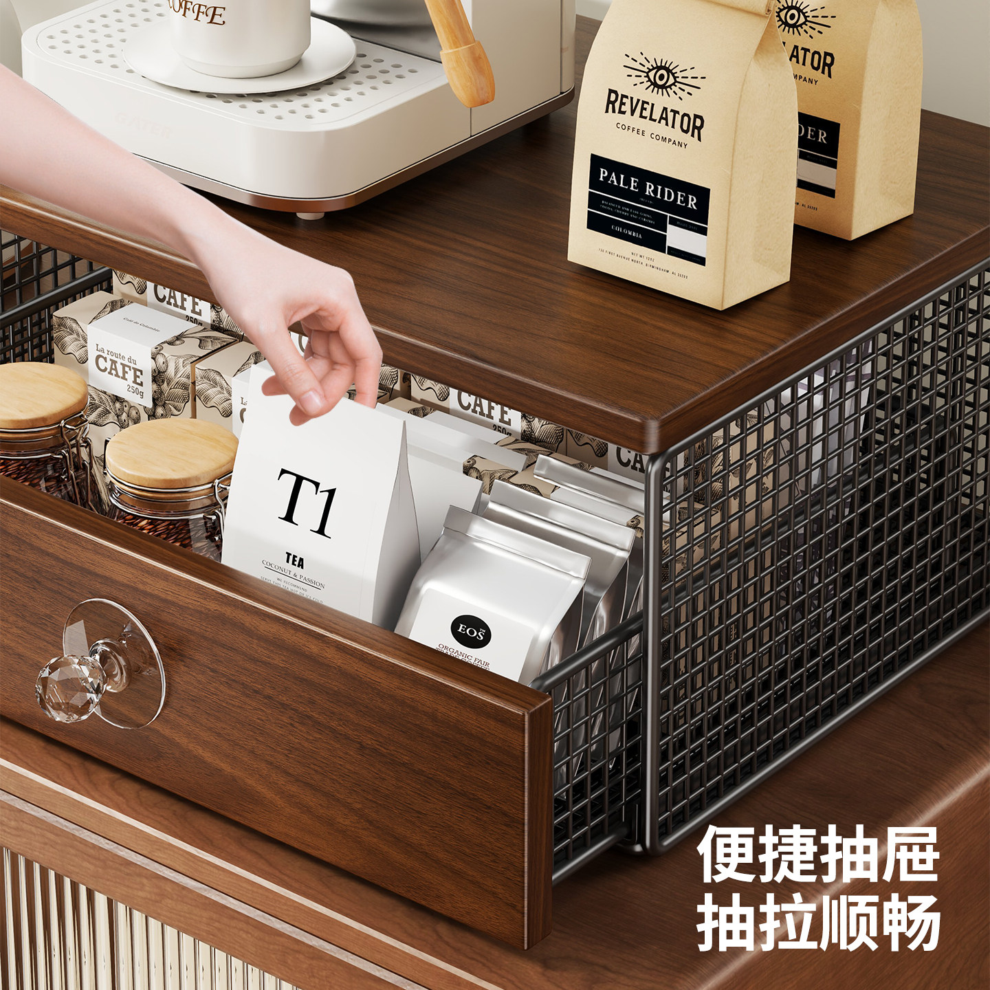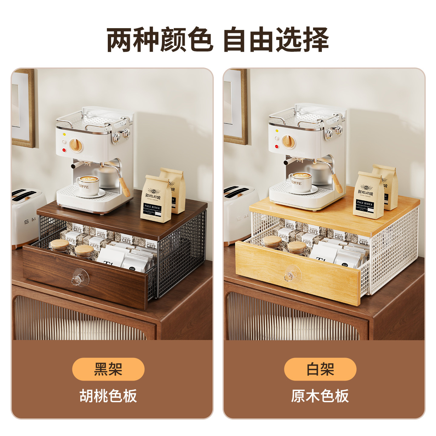 咖啡机置物架抽屉式摆放台餐桌杯架厨房办公室咖啡杯水杯架零食架