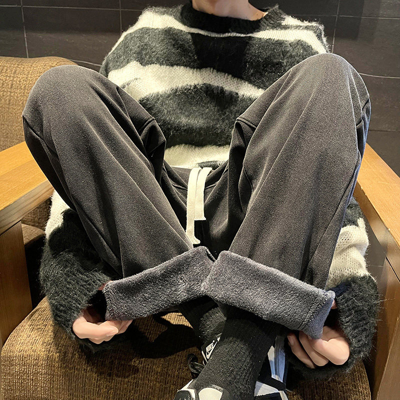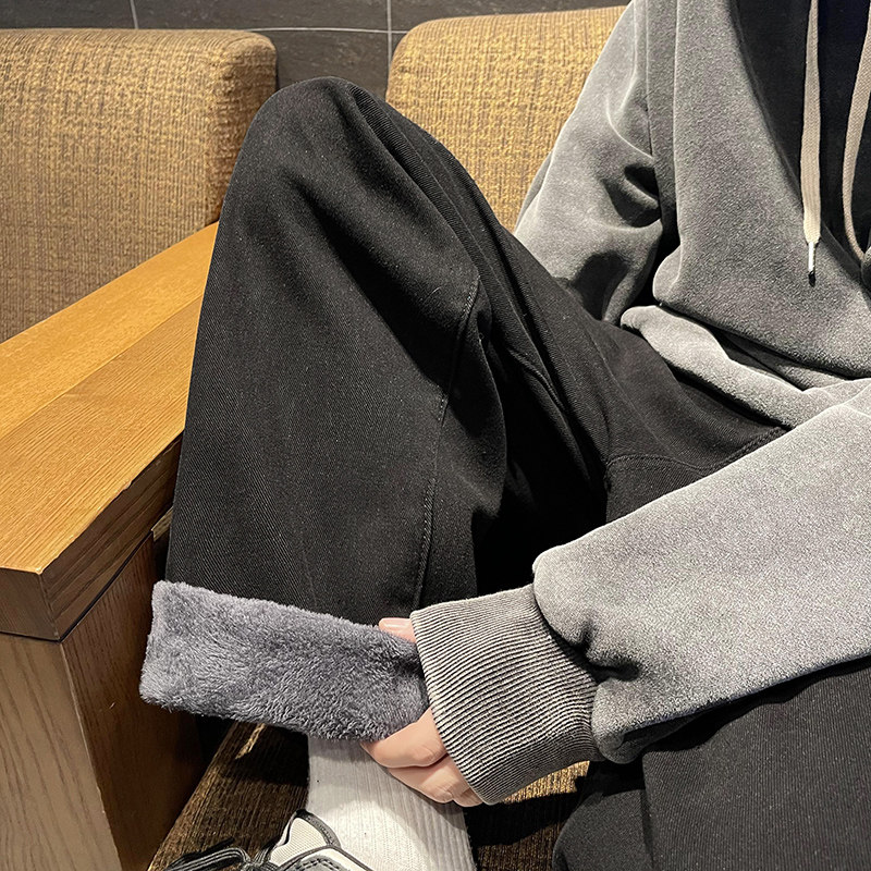 回力加绒加厚牛仔裤男士秋冬季2025新款潮牌宽松直筒阔腿休闲长裤