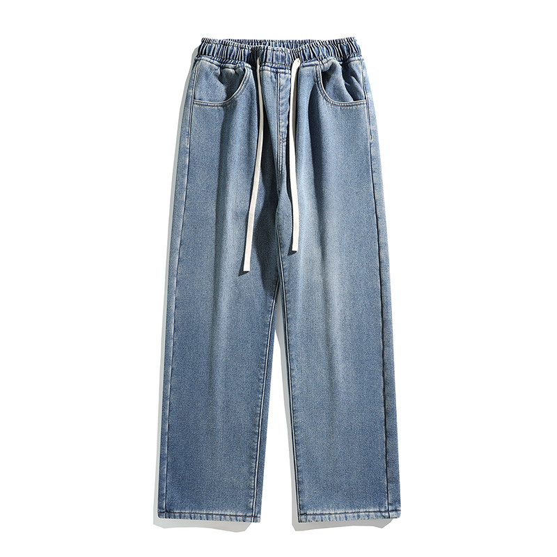 复古牛仔裤男宽松直筒松紧腰2025年春秋季新款潮牌阔腿男生长裤子
