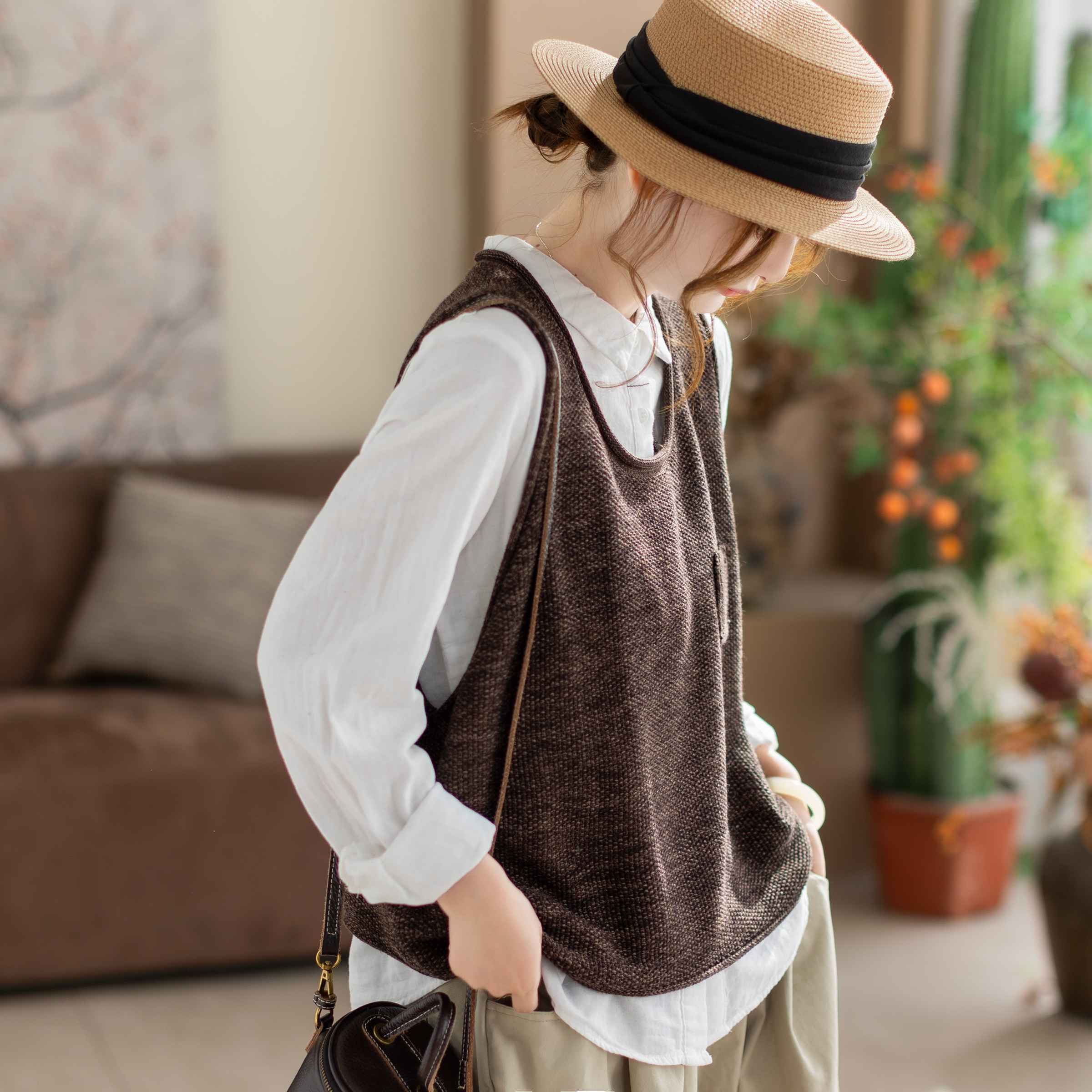 咖咪羽针织马甲女春秋新款女士无袖坎肩宽松流行棉线女装上衣马夹