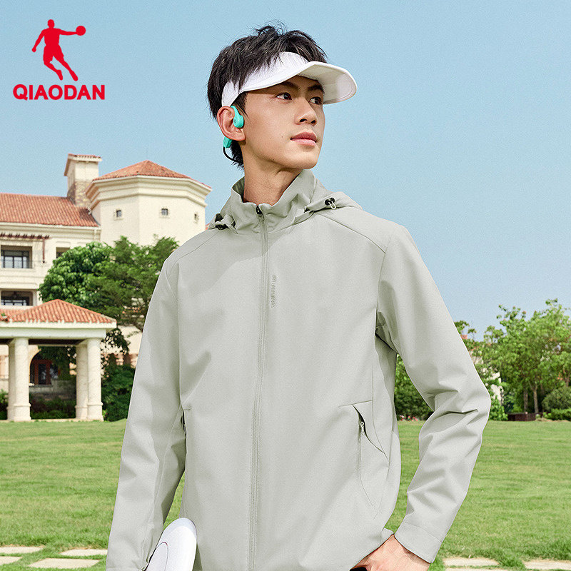 乔丹网布风衣跑步防风男生商场同款2026春季新款防泼水可拆卸帽