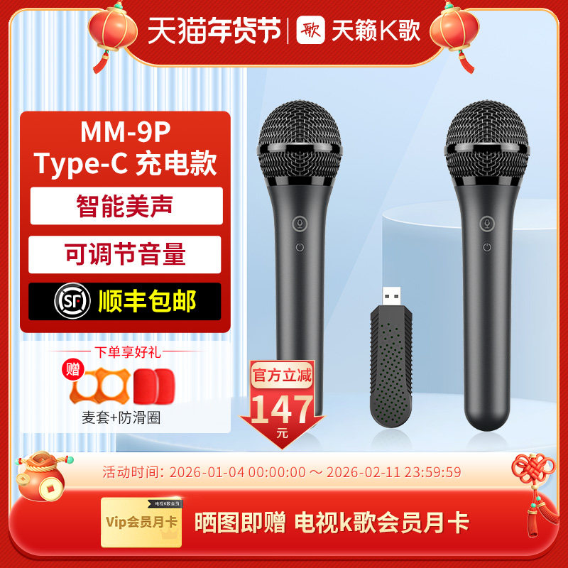 天籁K歌MM-9D无线麦克风适用于海信TCL雷鸟连接电视家用唱歌话筒