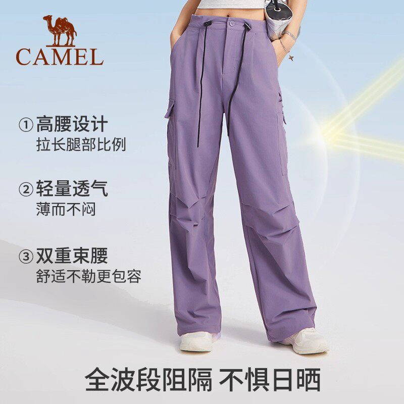 骆驼降落伞工装裤运动长裤女秋春季高腰垂感美式束脚阔腿伞兵裤夏