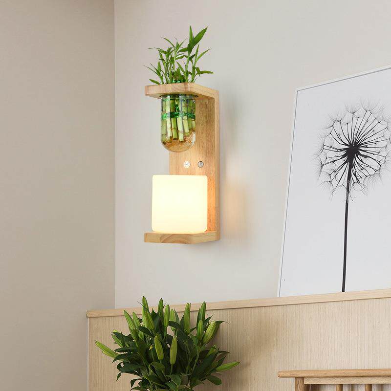 智能人体感应小夜灯led日式家用充电式北欧实木卧室床头壁灯具