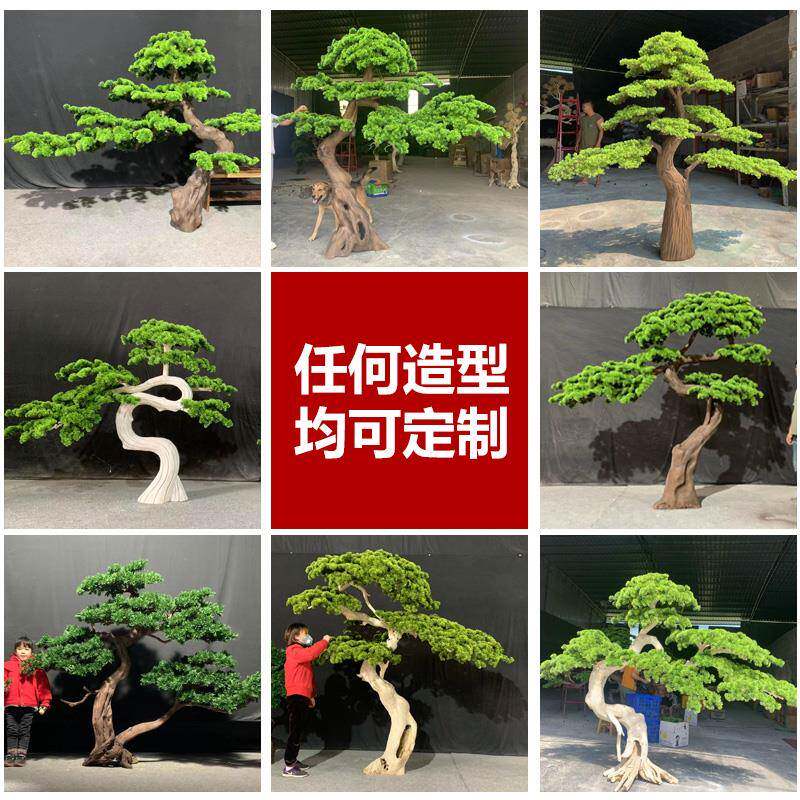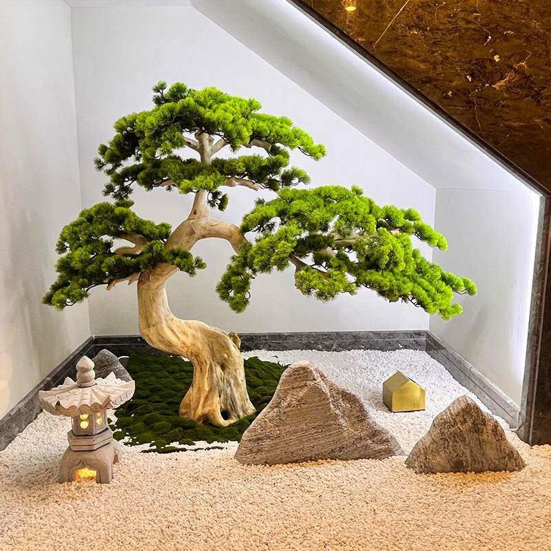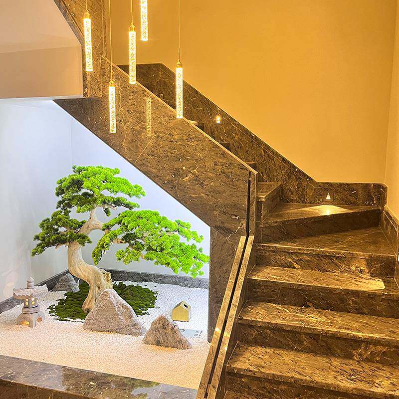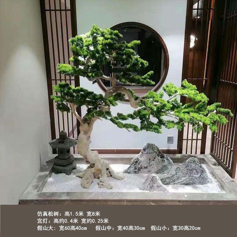 仿真松树迎客松新中式楼梯下绿植景观造景室内装饰玄关罗汉松摆件