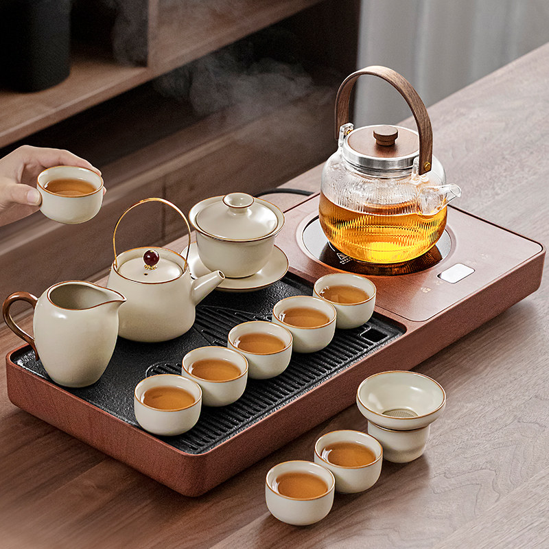 唐丰汝窑茶具泡茶套装家用高档小型自动一体茶盘烧水壶煮茶一整套