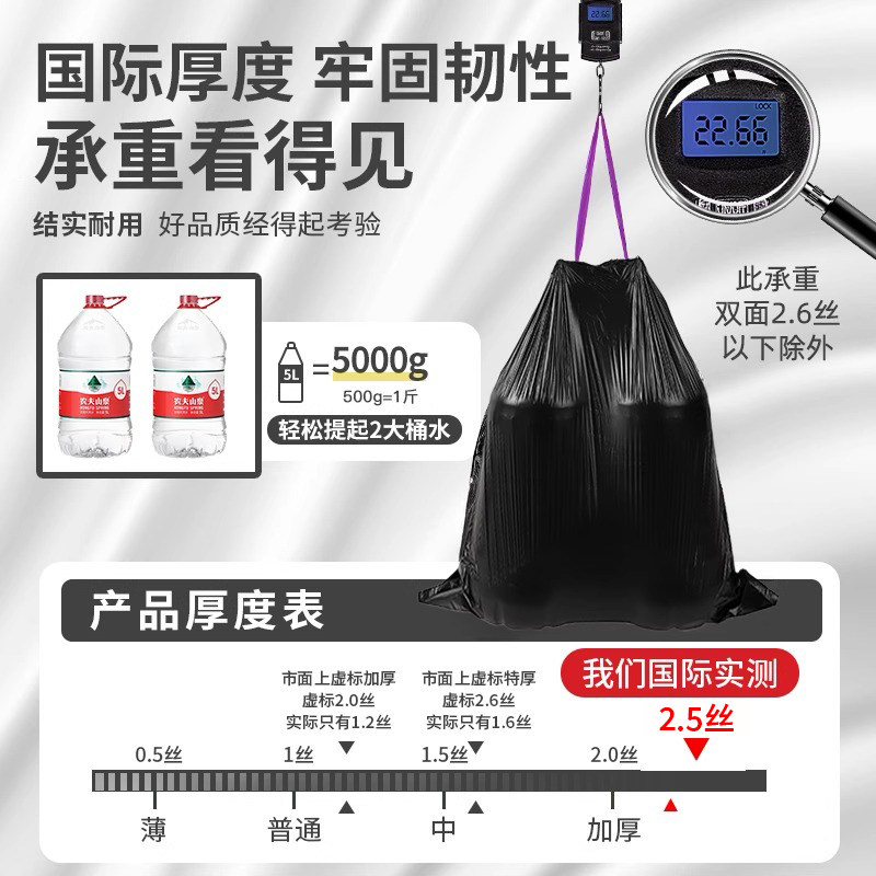 佳帮手垃圾袋加厚家用手提式黑色抽绳厨房用大号特厚实惠装塑料袋