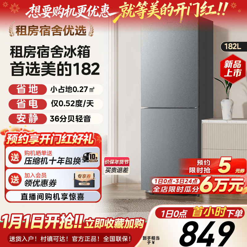 美的182双开门两门小冰箱家用小型租房宿舍用冷藏冷冻节能