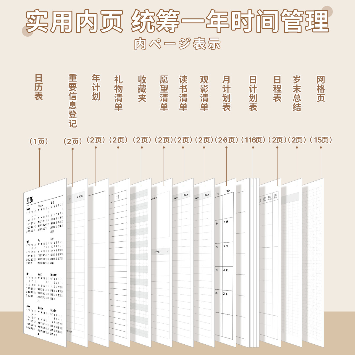 2026全年日程本计划表新款定制笔记本子工作日志日记本日历记事本自律打卡效率手册时间管理手账高颜值ins风