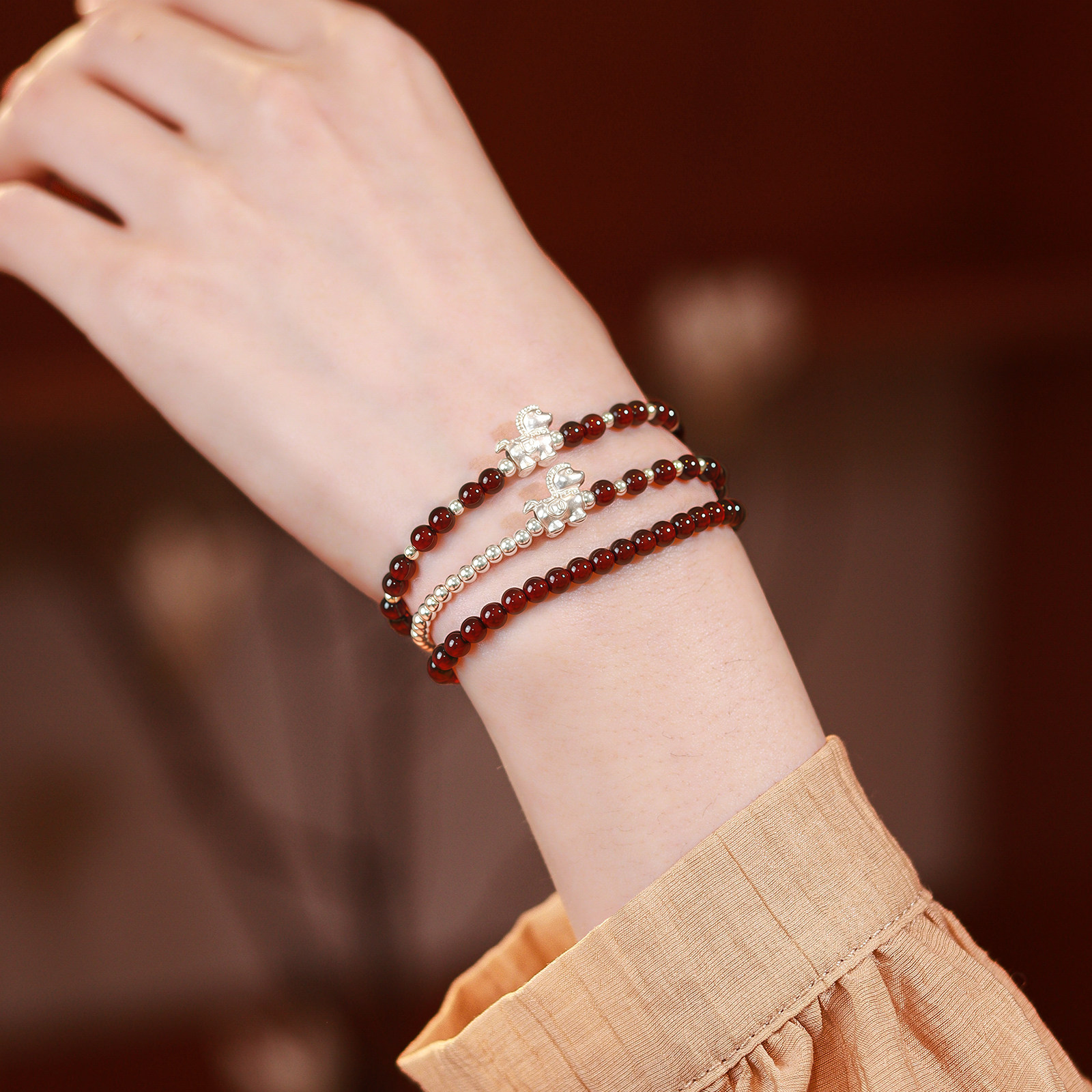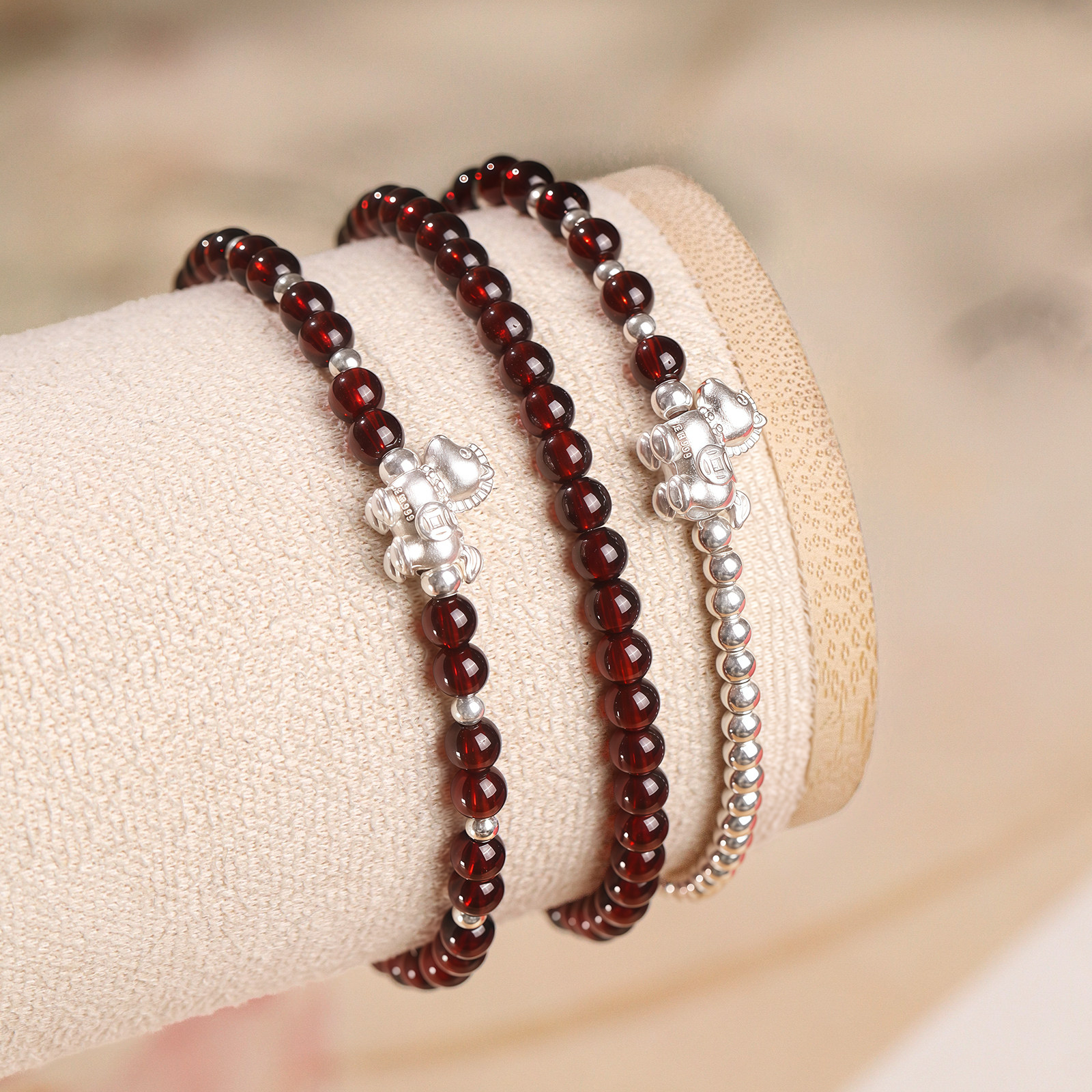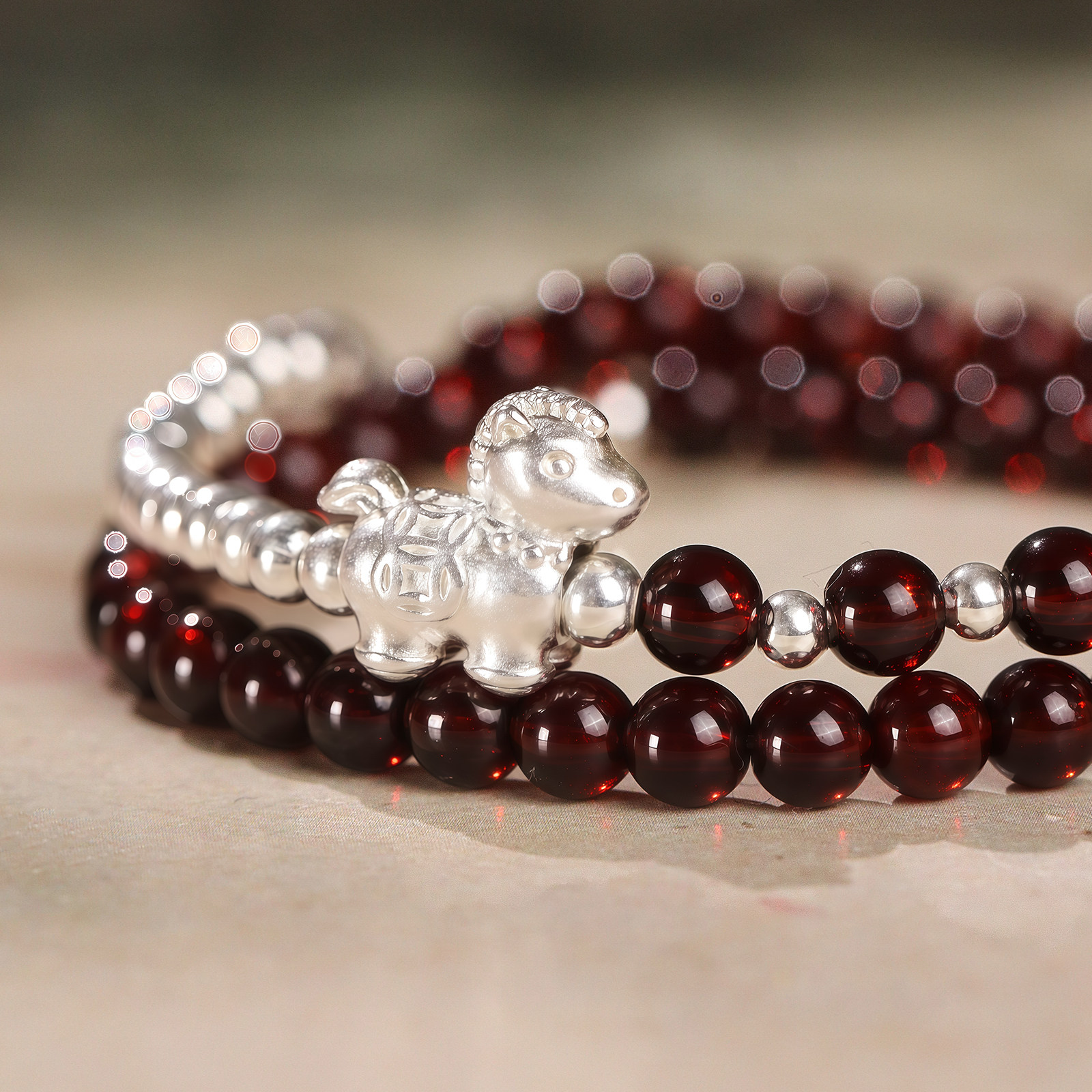 马踏焰纯天然石榴石手串女款足银999马年2026本命年手链小众精致