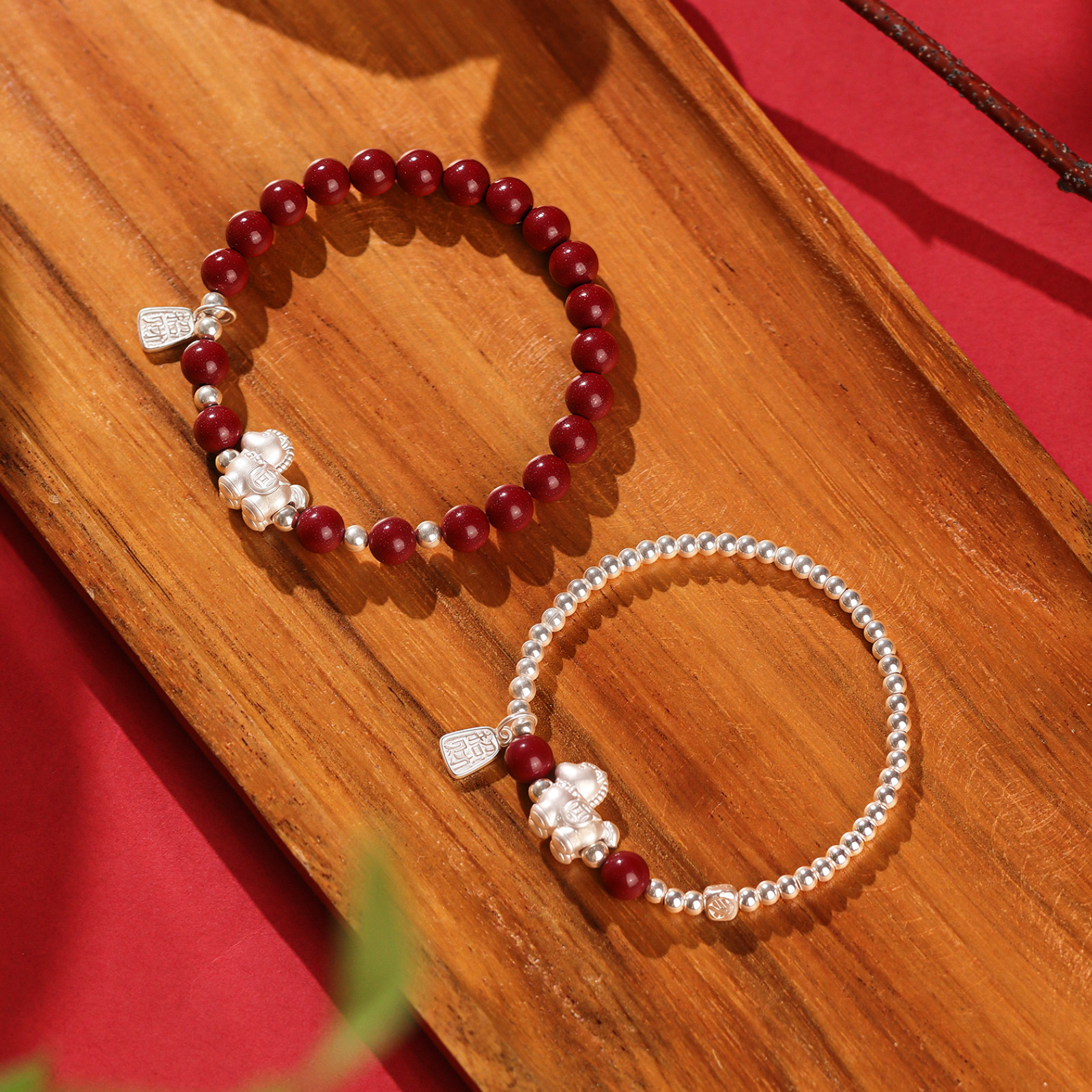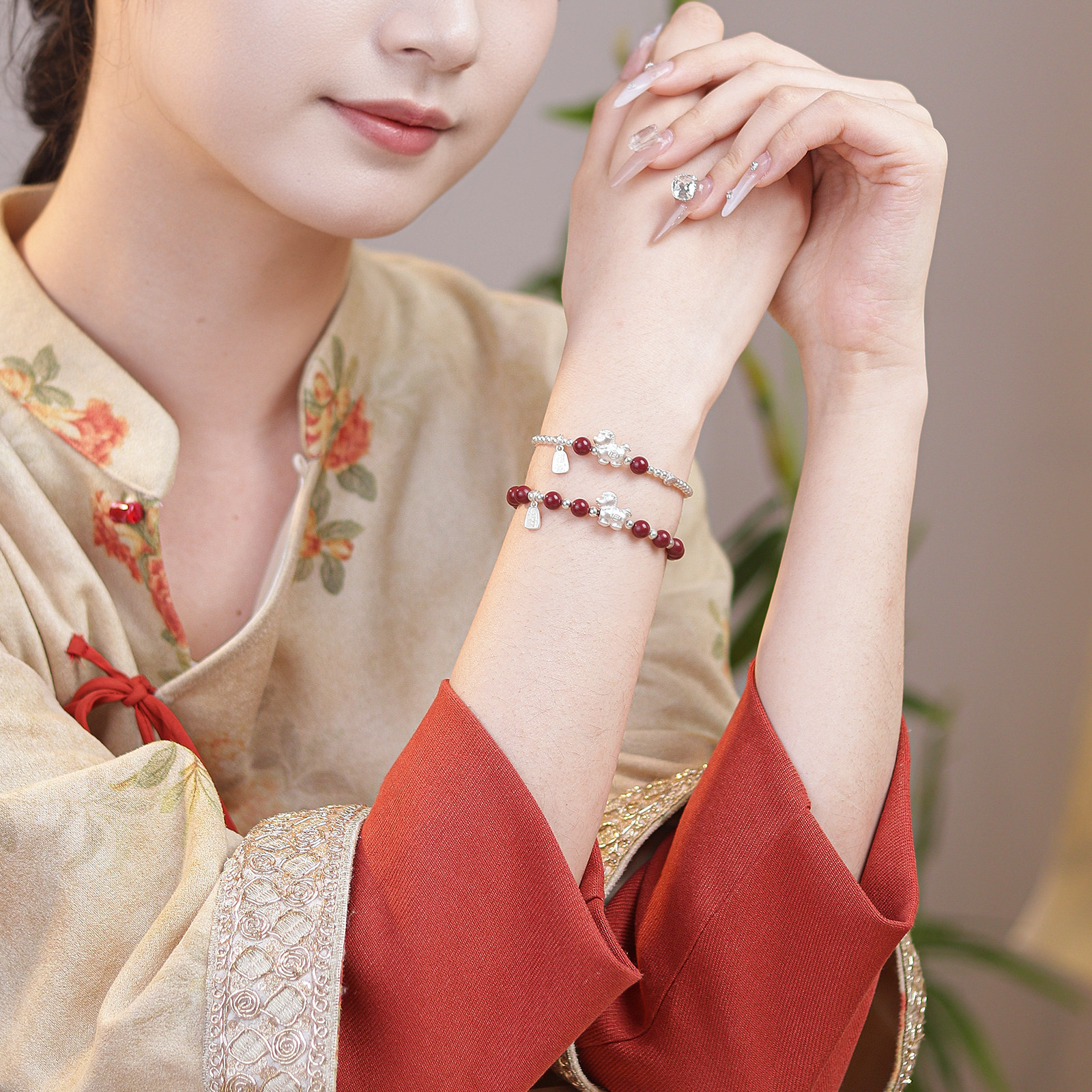赤鸿砂朱砂手串正品官方旗舰店足银999招财马小众手链女红绳银珠