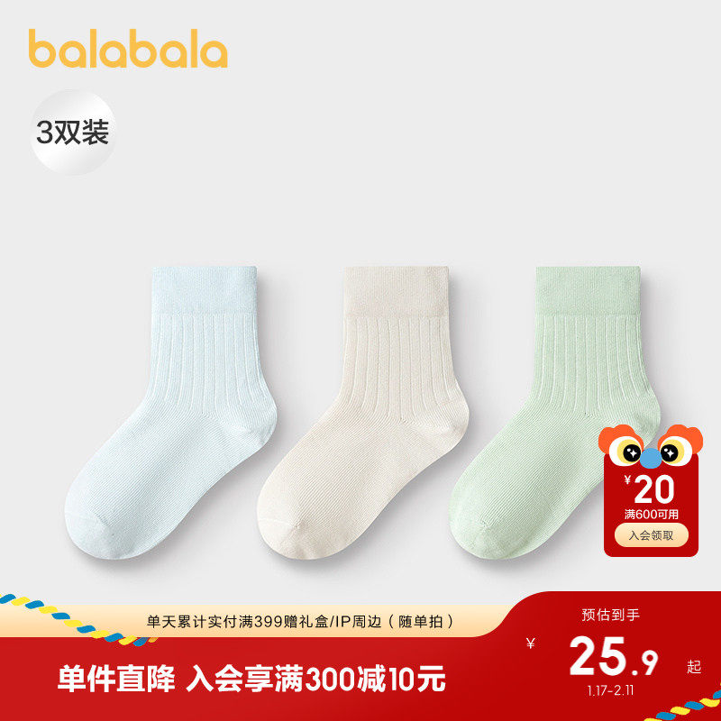 巴拉巴拉女童袜子春秋装儿童中筒婴童袜不勒脚三双装