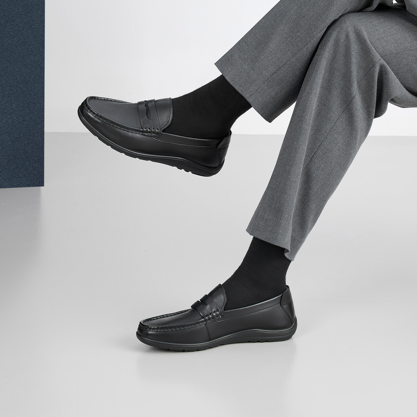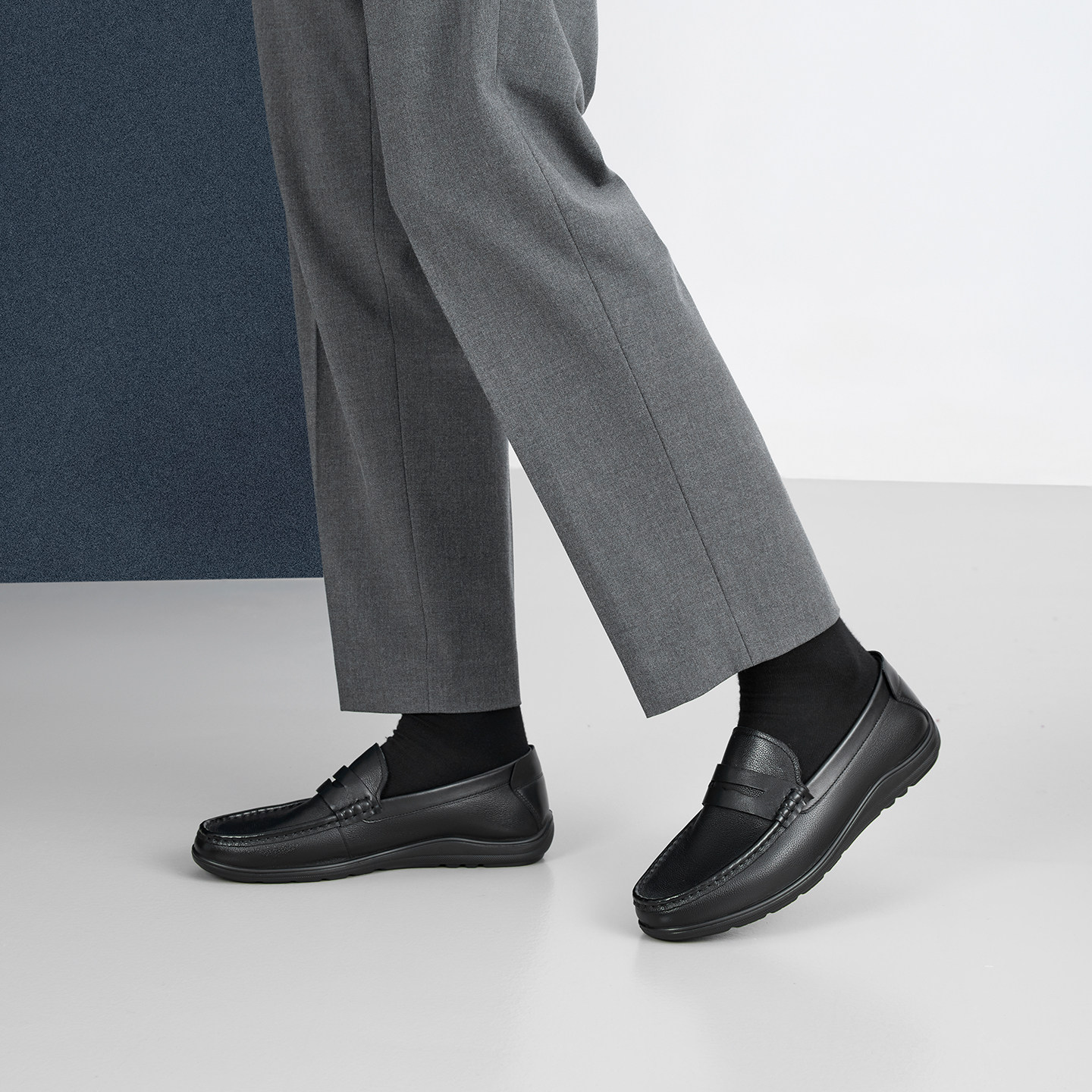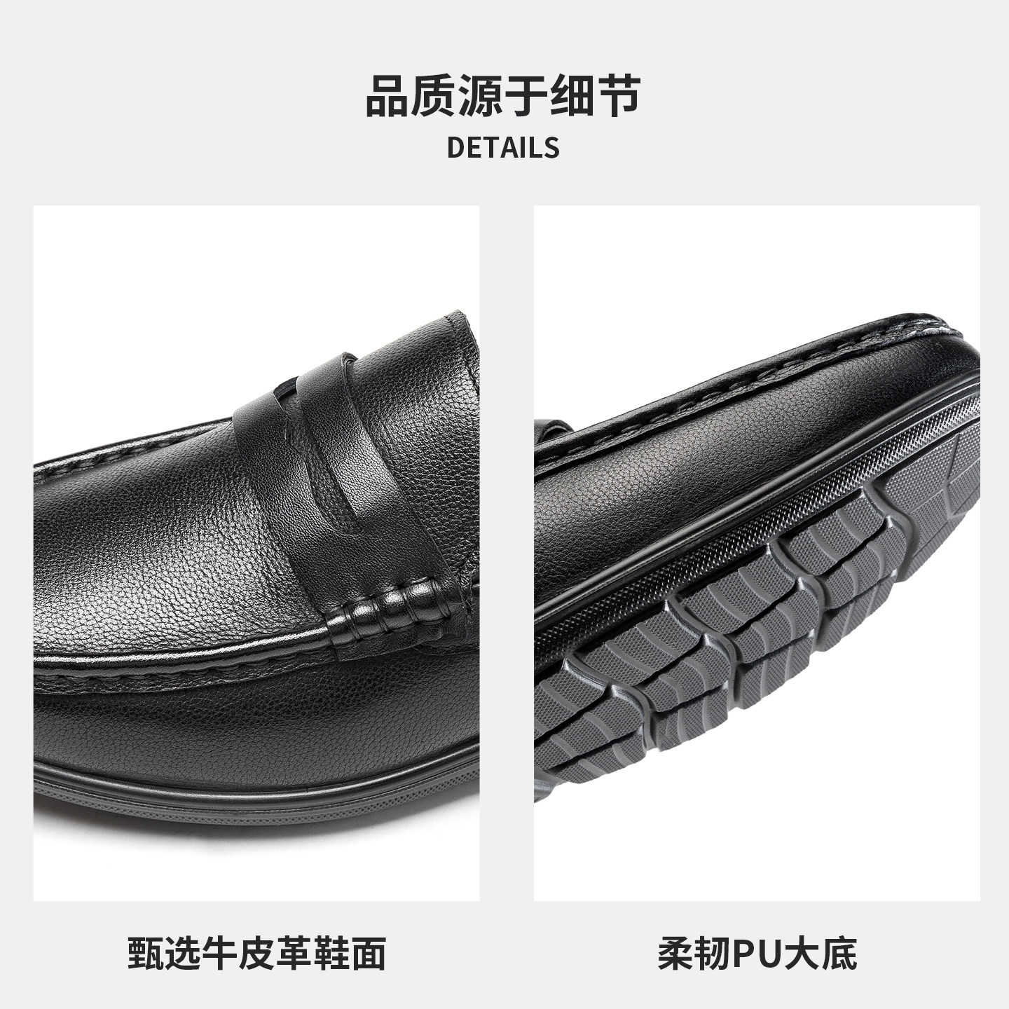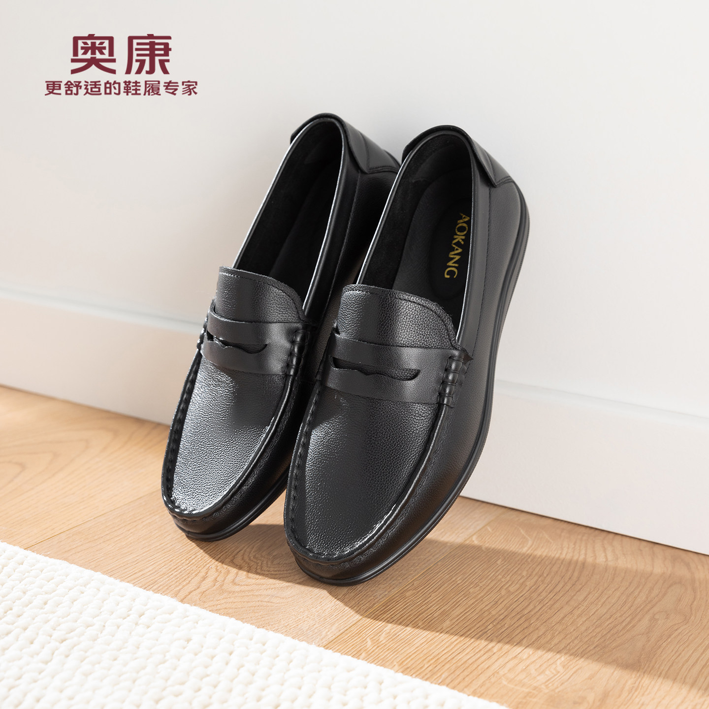 奥康春秋季商务休闲皮鞋男真皮软底乐福鞋舒适一脚蹬套脚爸爸鞋
