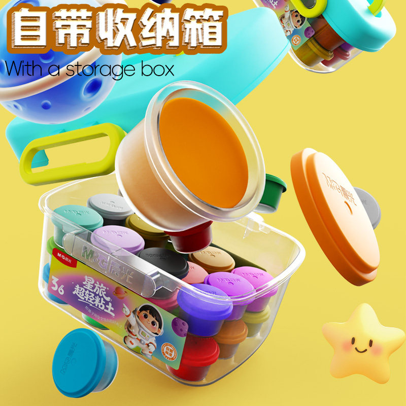 晨光星旅超轻粘土无毒儿童幼儿园专用彩泥橡皮泥12色24色36色太空泥小学生黏土手工制作diy材料工具玩具套装