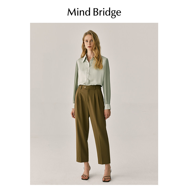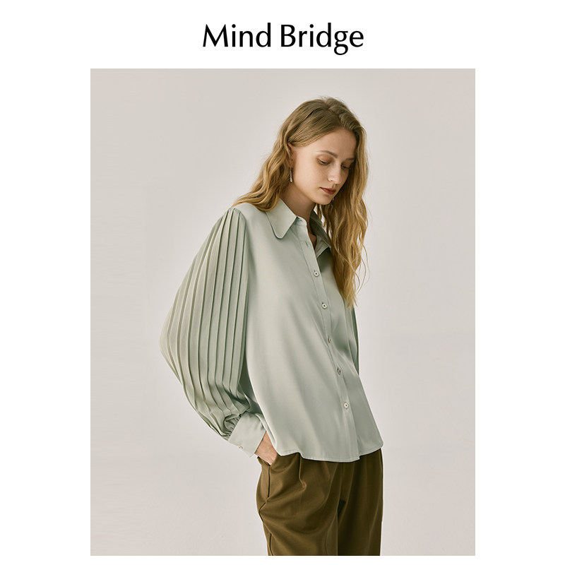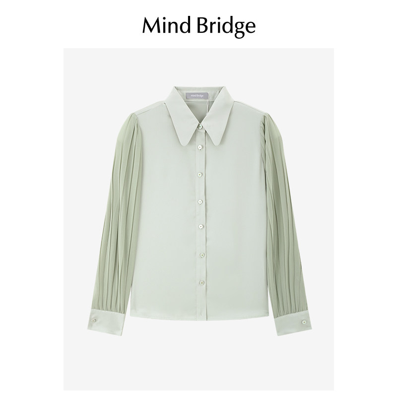 MB MindBridge2026春季长袖衬衫女士通勤翻领衬衣法式复古上衣