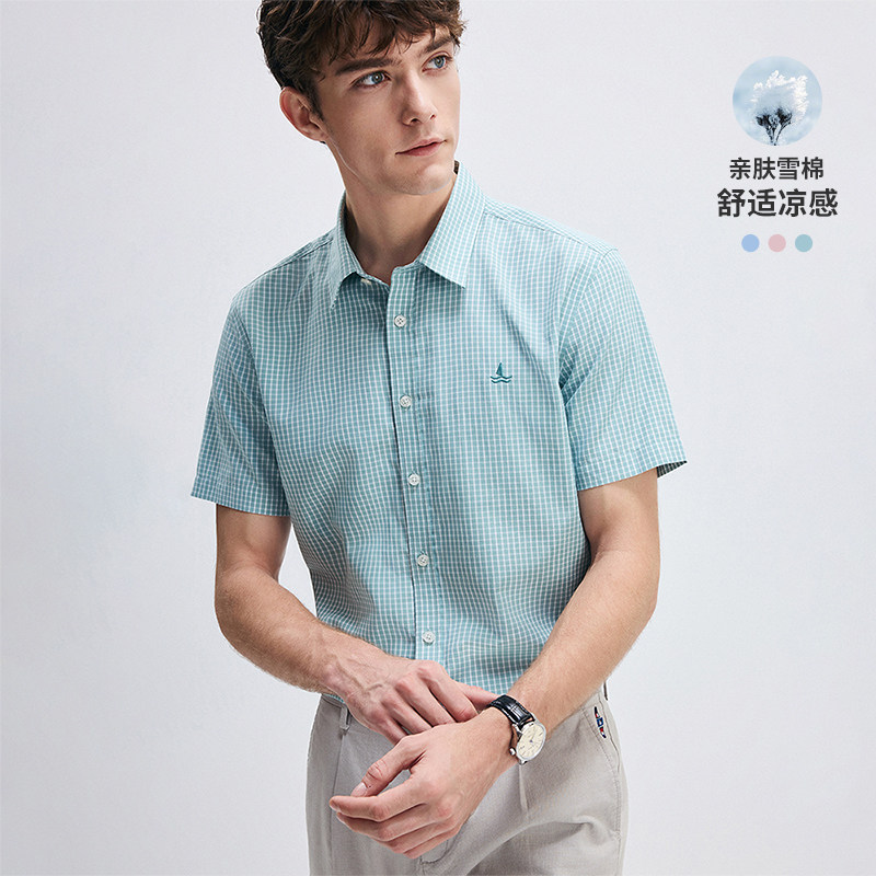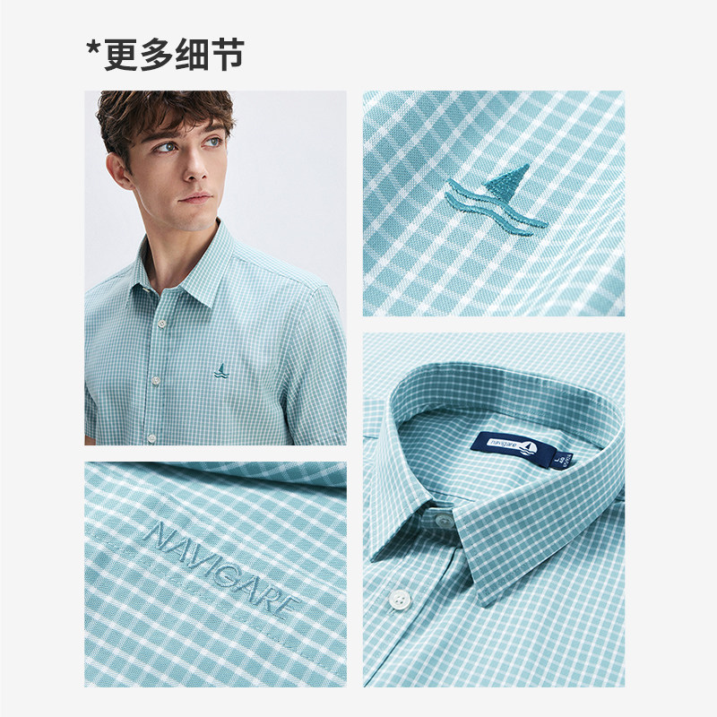 [冰丝]Navigare意大利小帆船夏季时尚格子衬衫男士短袖衬衣