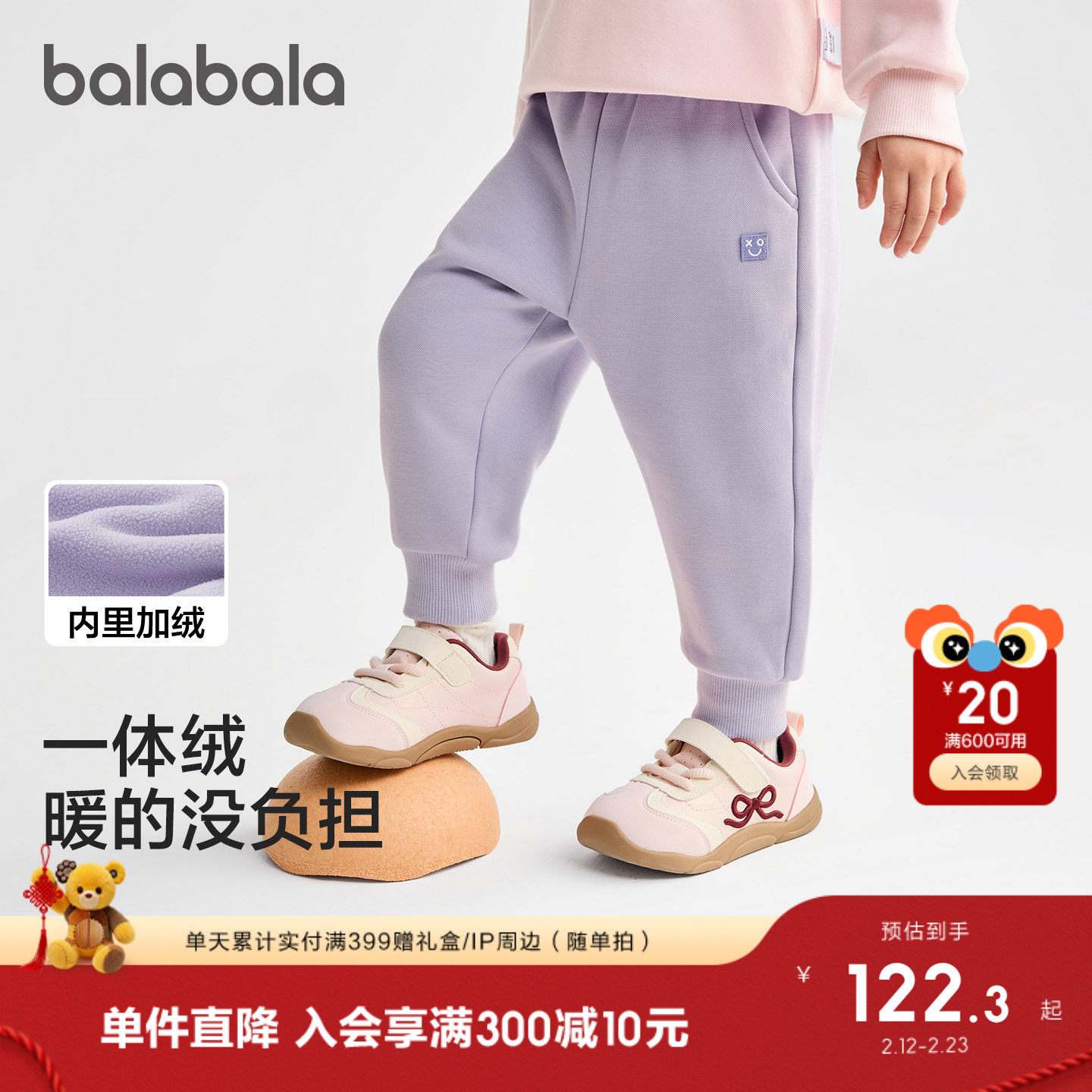 【商场同款】巴拉巴拉儿童长裤子男女童2025冬装新款宝宝加绒保暖