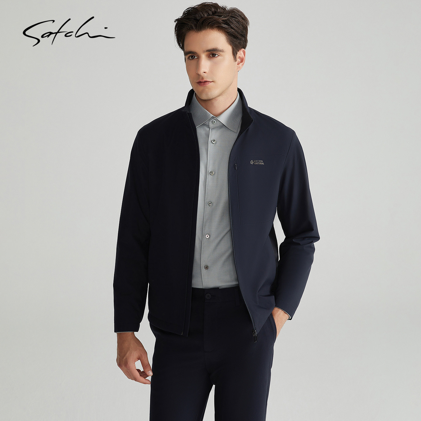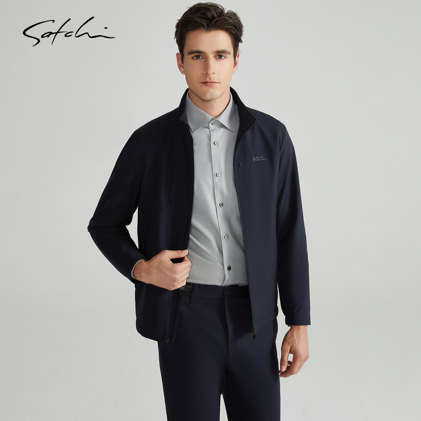 [蓄热黄金甲]SATCHI沙驰男装男士棉服春季新款商务立领夹克外套厚