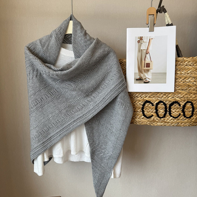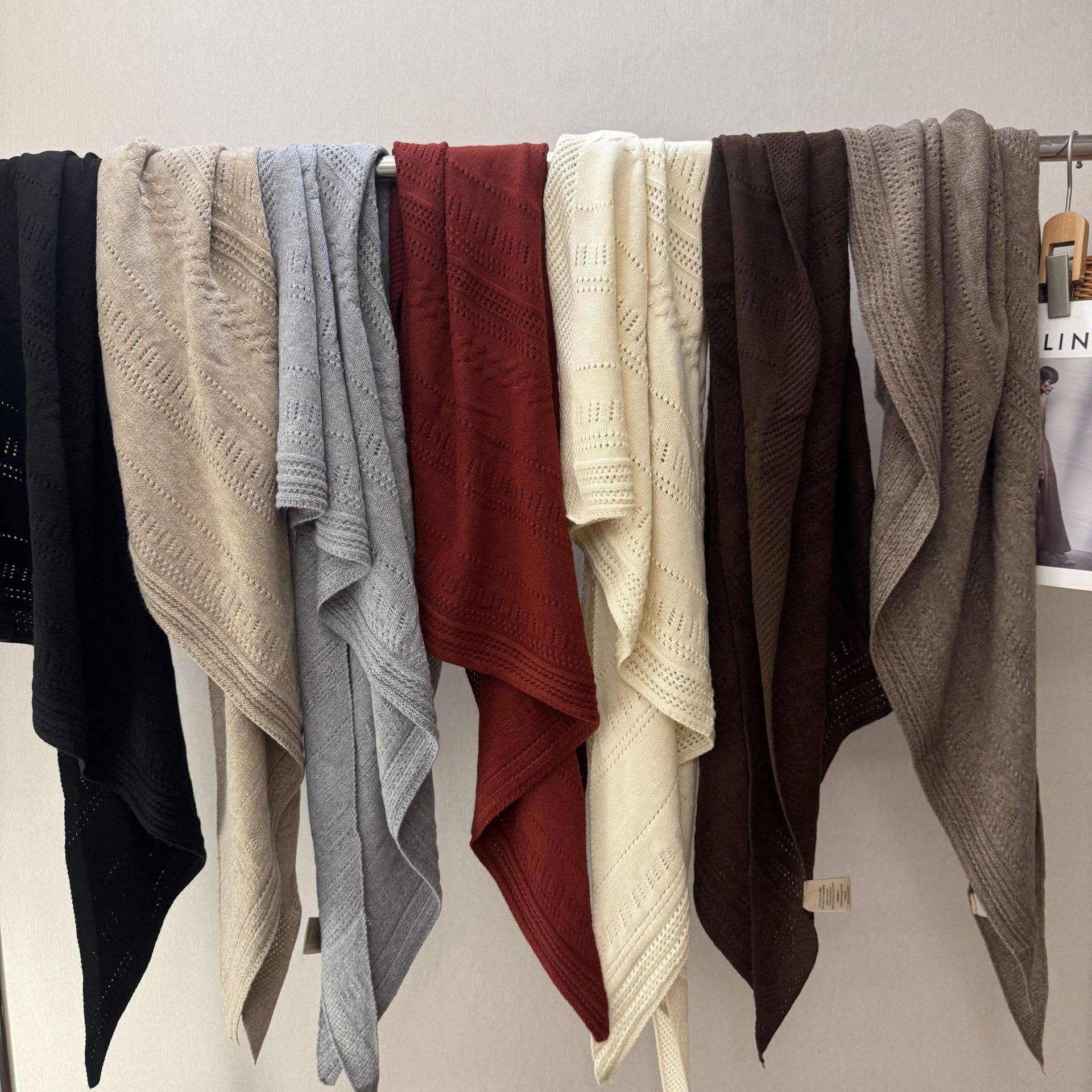 羊毛披肩秋冬新款镂空纯色多功能百搭针织三角巾保暖围脖流苏围巾