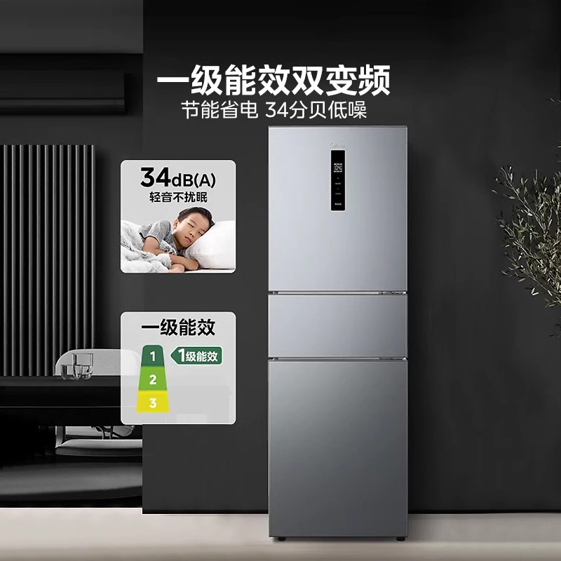 美的249三门冰箱风冷无霜变频官方超薄一级能效家用小型宿舍租房