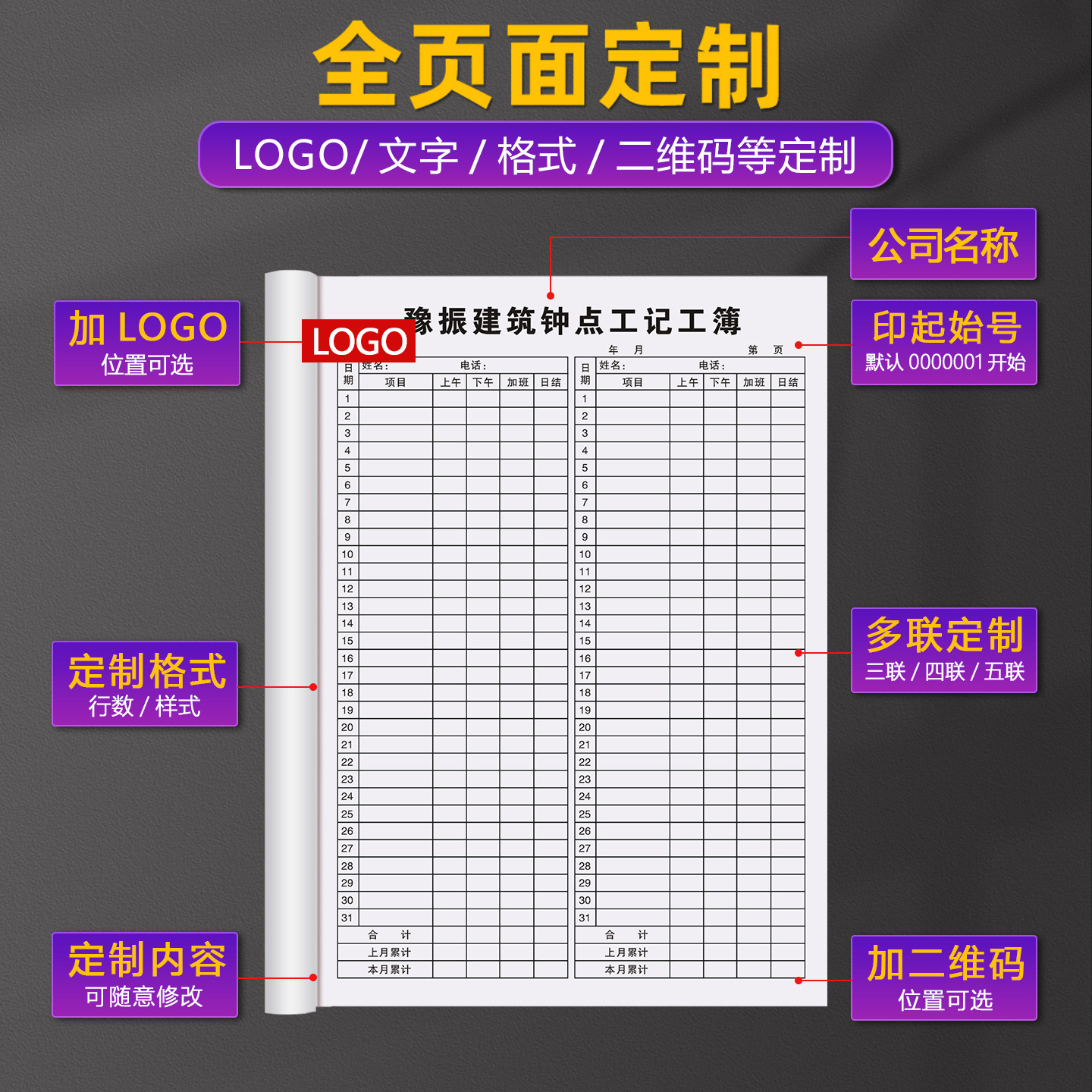 【钟点工专用记工本】31天带备注记工簿考勤表2026新款手帐明细账带日期临时工个人出勤记录本散工上班签到表