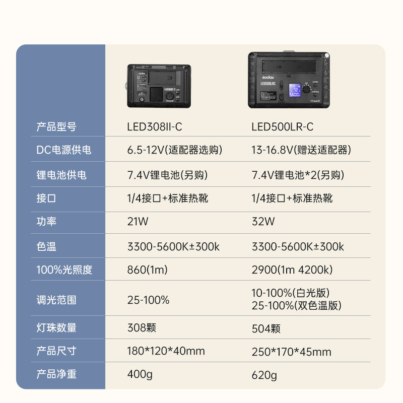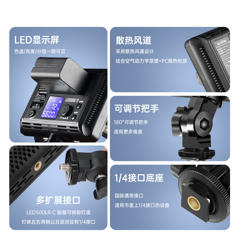 Godox 神牛LED308II二代相机热靴补光灯 双色温户外手持便携摄影灯 人像拍照短视频拍摄 婚礼跟拍常亮灯