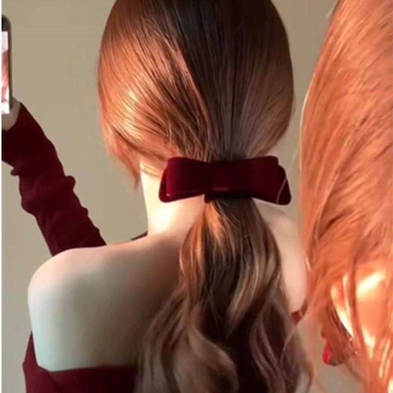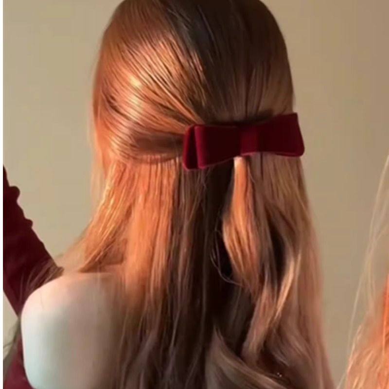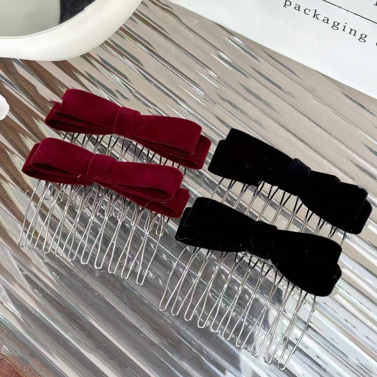 酒红丝绒双层蝴蝶结发梳倒插梳发夹插梳侧边发卡刘海梳头饰碎发女