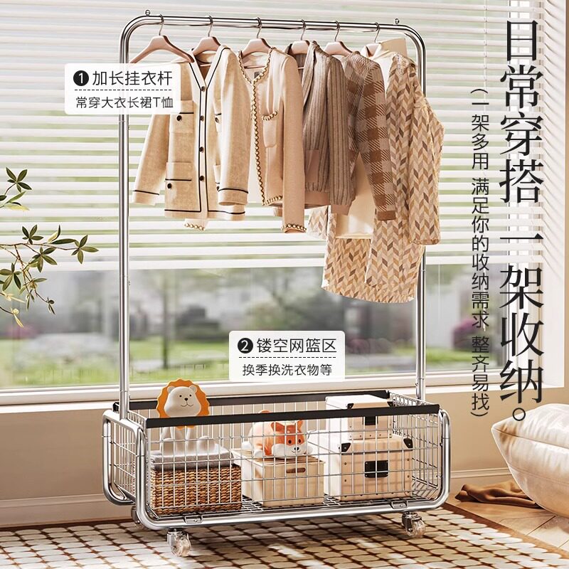 晾衣架落地家用可移动卧室凉衣架阳台挂衣服架子室内简易杆衣帽架