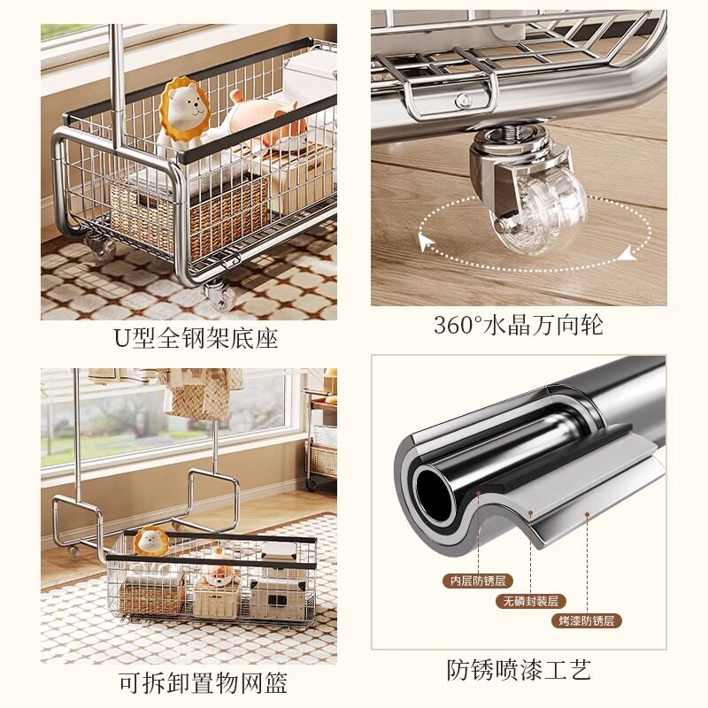 晾衣架落地家用可移动卧室美容院挂衣服架子室内阳台简易杆衣帽架