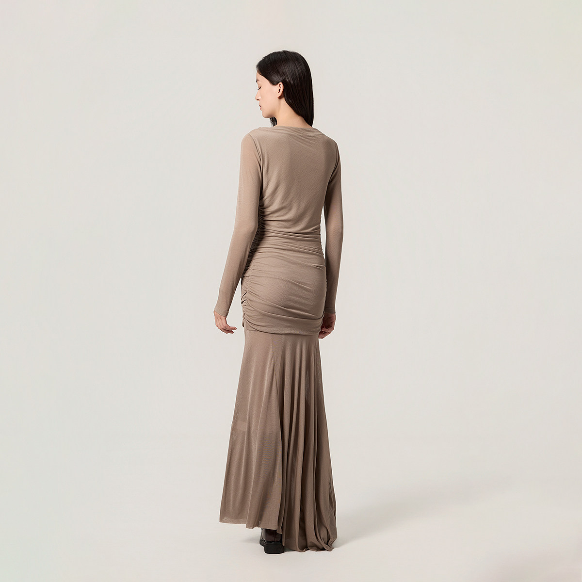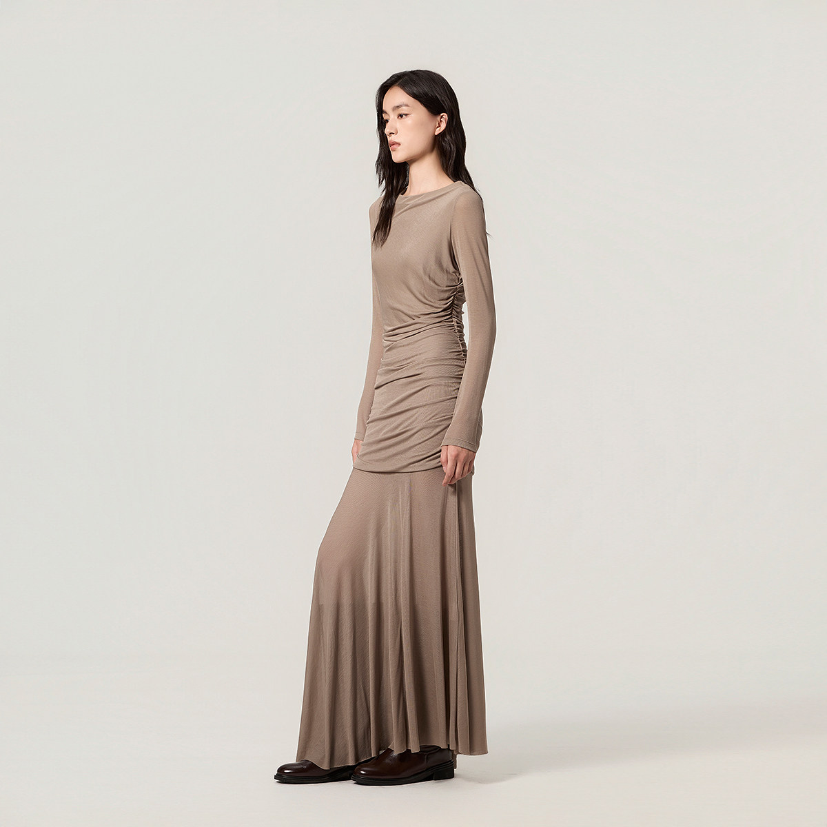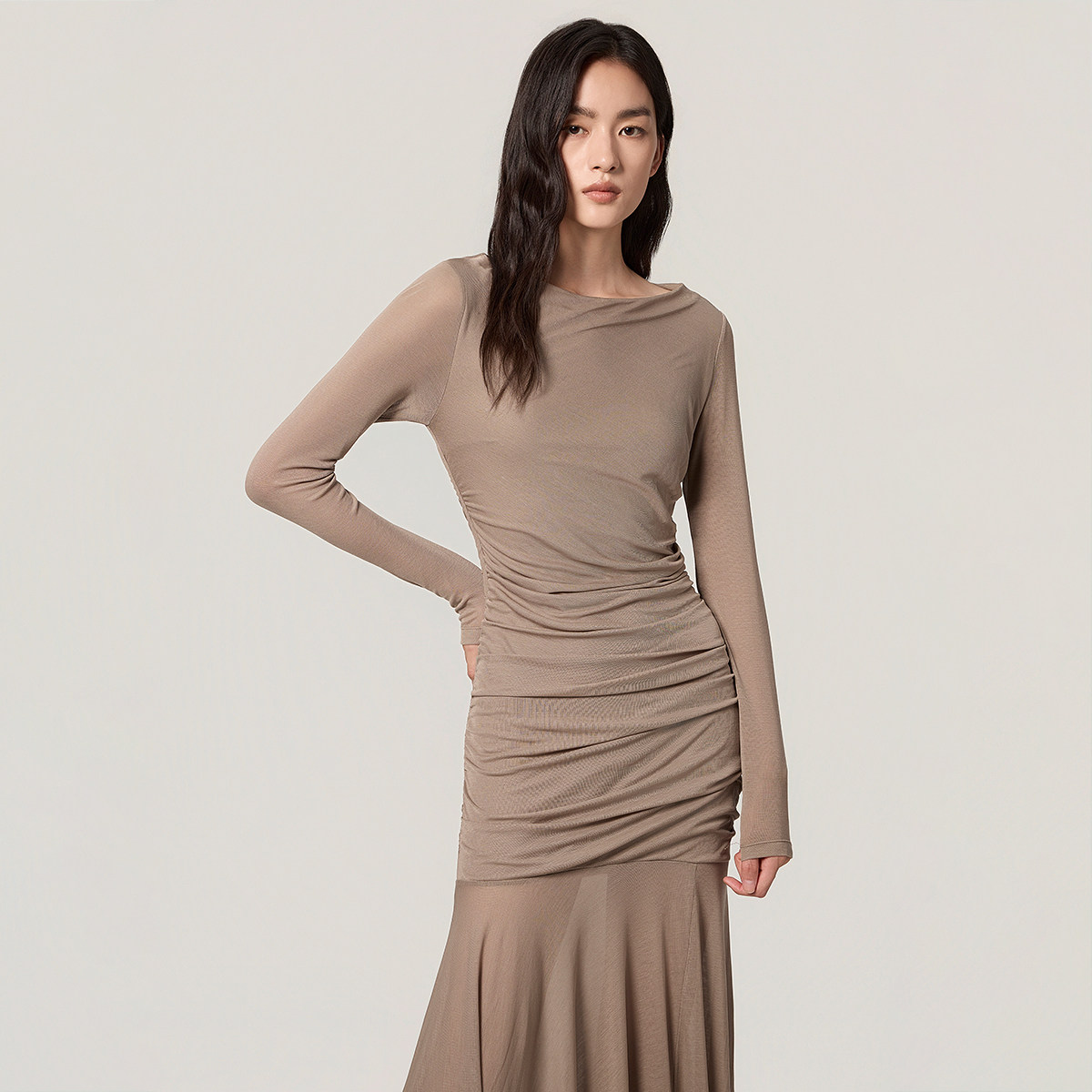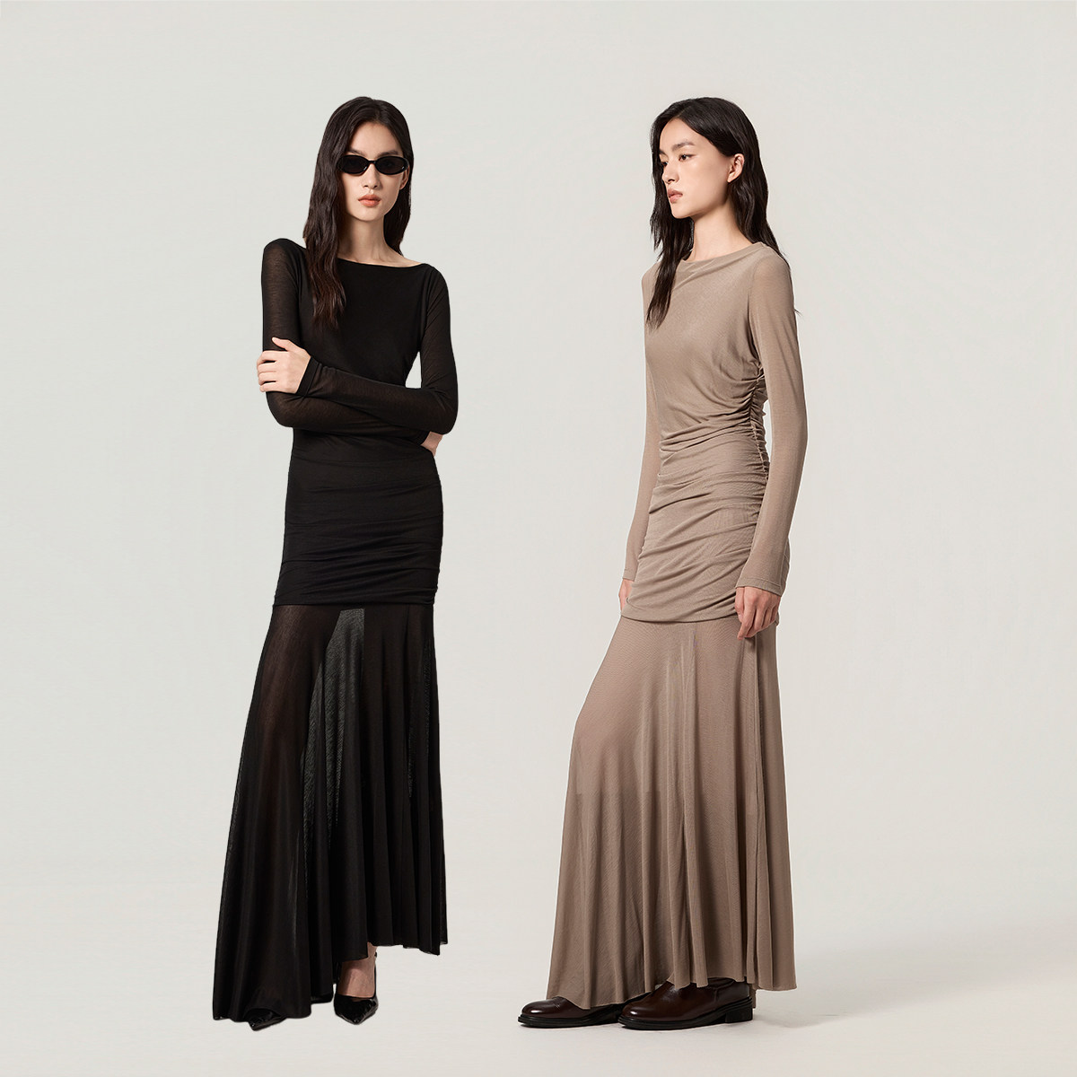 【特享折扣】奚梦瑶同款OCHIRLY欧时力天丝微透褶针织连衣裙25冬