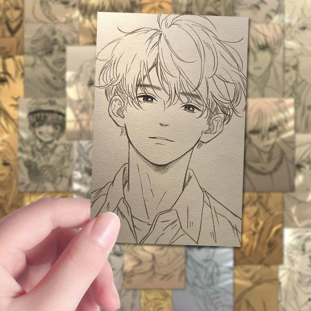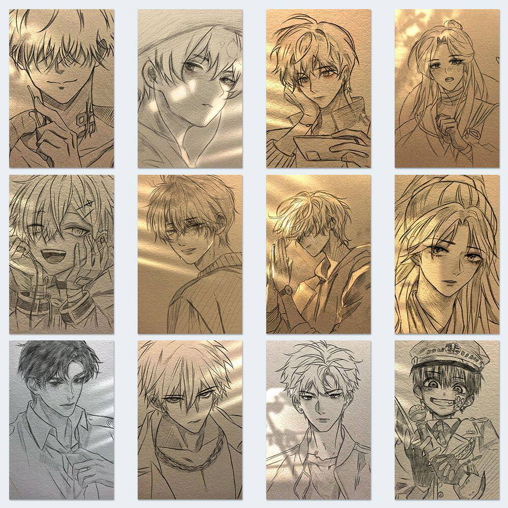 96张青春少年素描临摹贴纸高颜值帅哥动漫人物线稿贴画diy粘贴