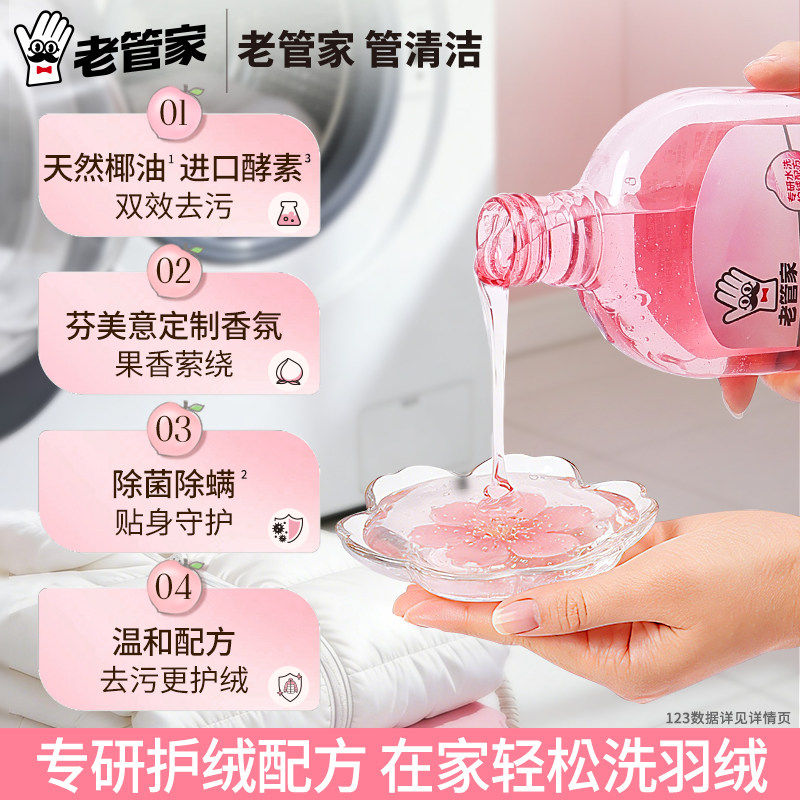 老管家羽绒服清洗剂水洗机洗专用蓬松洗涤剂中性洗衣液去污清洁剂