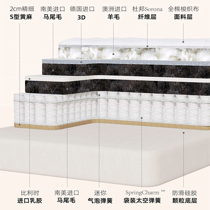 「寝物原始」整床无胶水独立袋装双层弹簧羊毛手工拉扣定制床垫