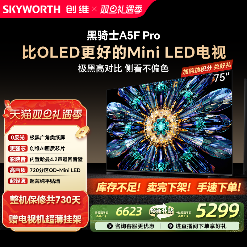 创维A5F Pro 75英寸MiniLED电视机A5D Pro升级款 以旧换新补贴