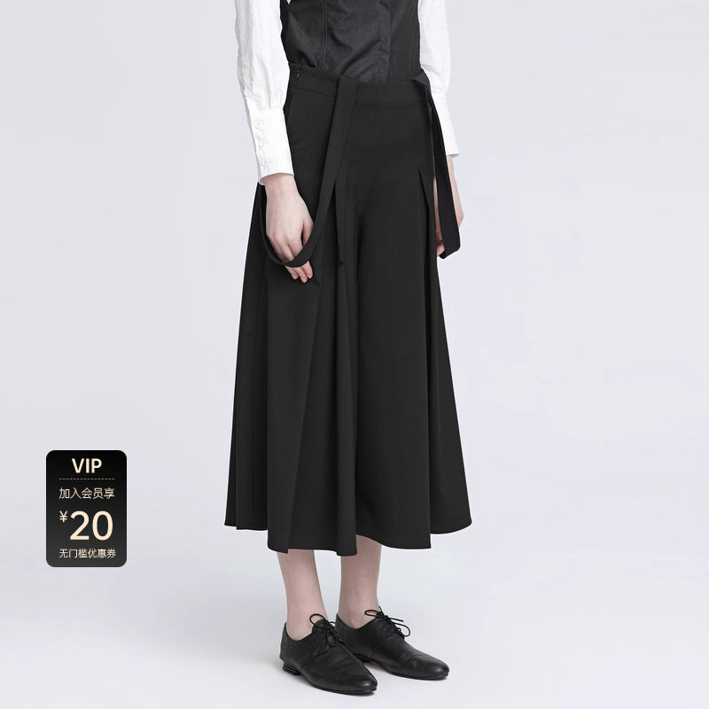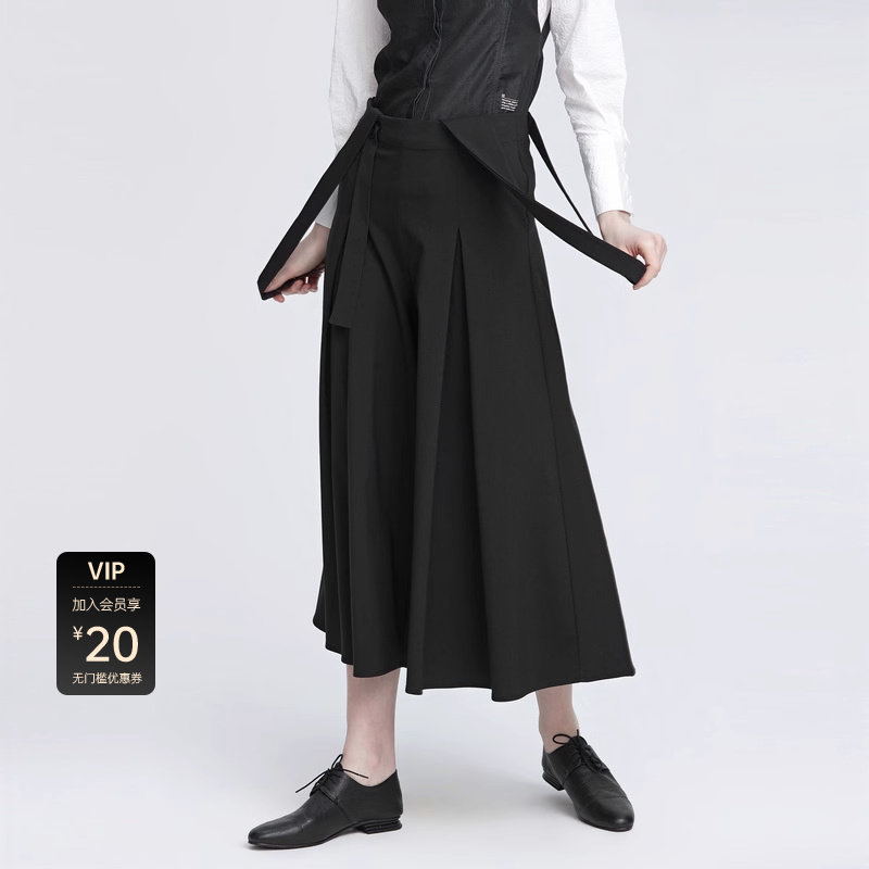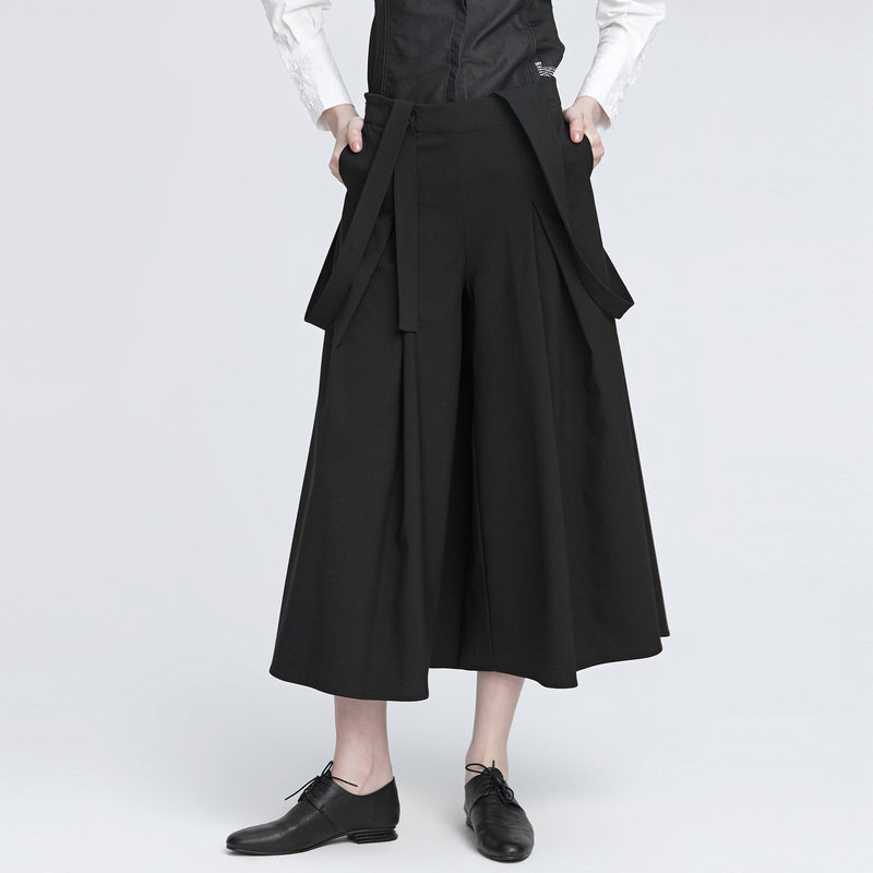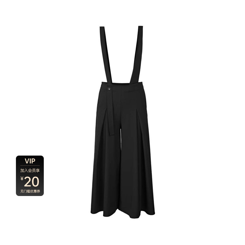 sdeer圣迪奥女装秋时尚压褶黑色背带阔腿长裤S22180814