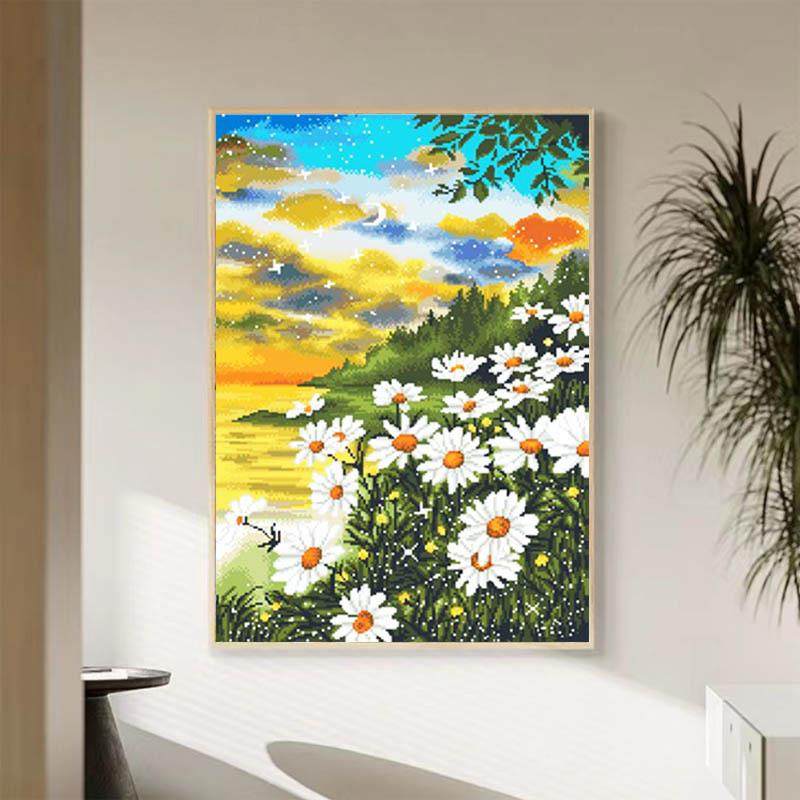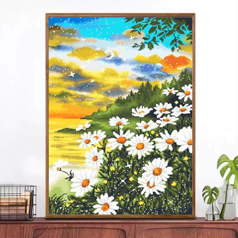 工厂油画小雏菊十字绣满绣新款线绣印花十字绣客厅